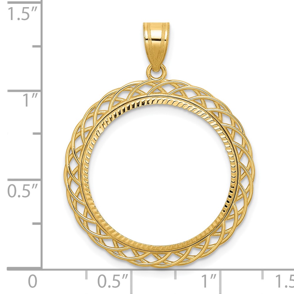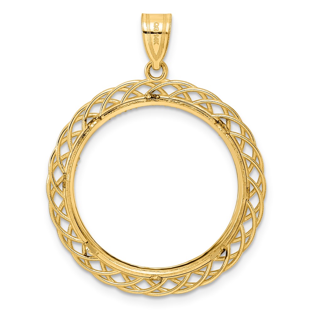 Wideband Distinguished Coin Jewelry 14k Polished Twisted Edge with Geometric Top 16.5mm Prong Coin Bezel Pendant