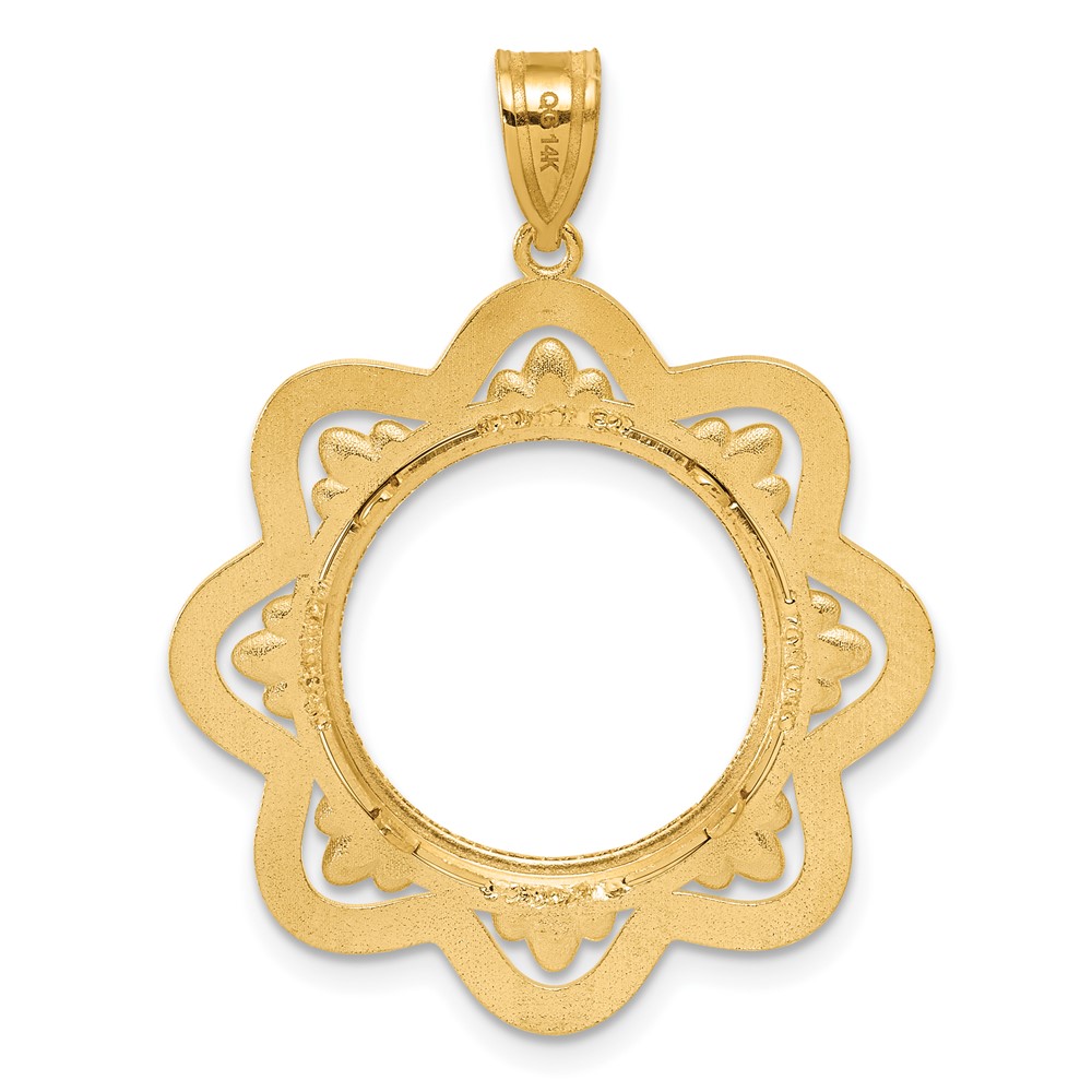 Wideband Distinguished Coin Jewelry 14k Polished Rope and Diamond-cut 15.0mm x 0.8mm Screw Top Coin Bezel Pendant