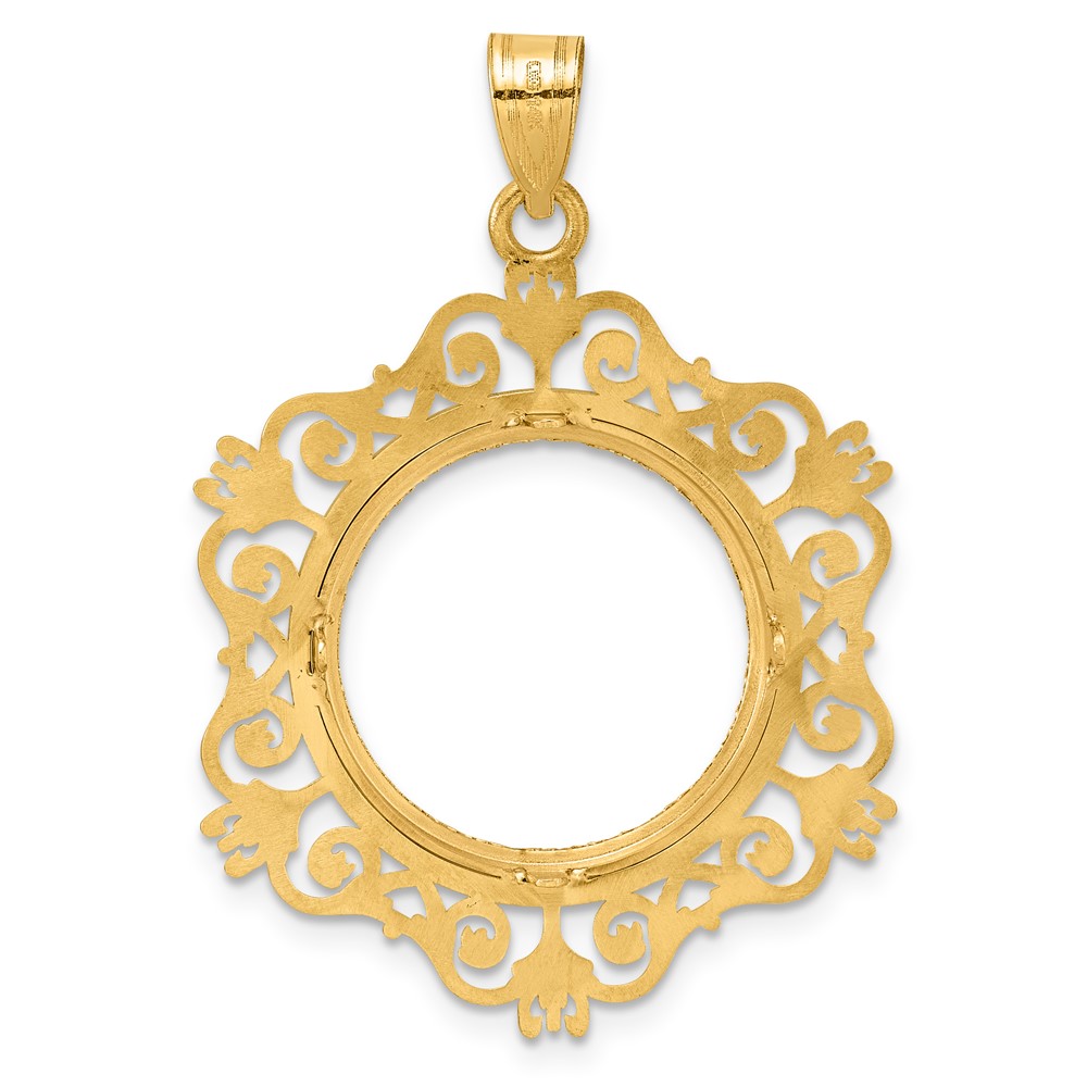 14k Diamond Cut Victorian with 18.0mm Prong Coin Bezel Pendant