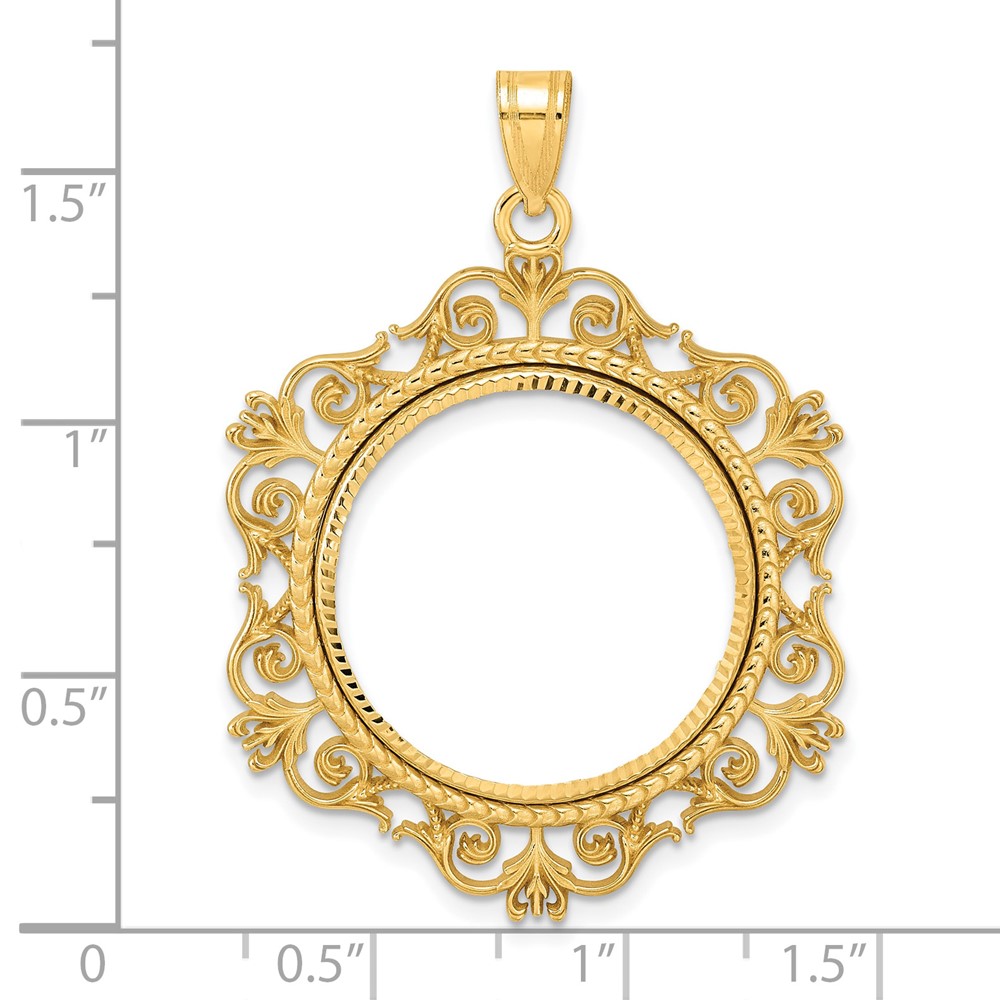 14k Diamond Cut Victorian with 22.0mm Prong Coin Bezel Pendant