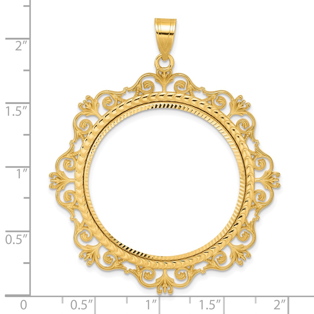 14k Diamond Cut Victorian with 32.0mm Prong Coin Bezel Pendant