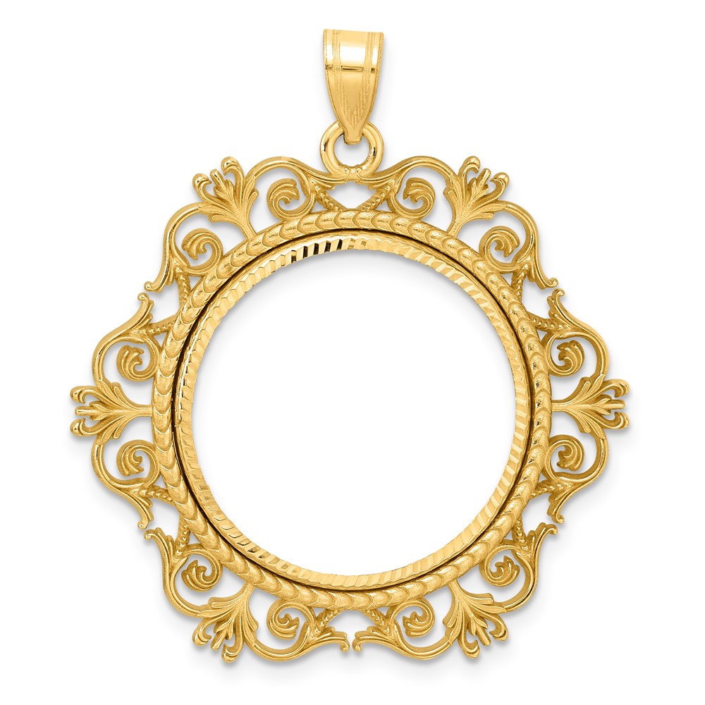 14k Diamond Cut Victorian with 22.0mm Prong Coin Bezel Pendant