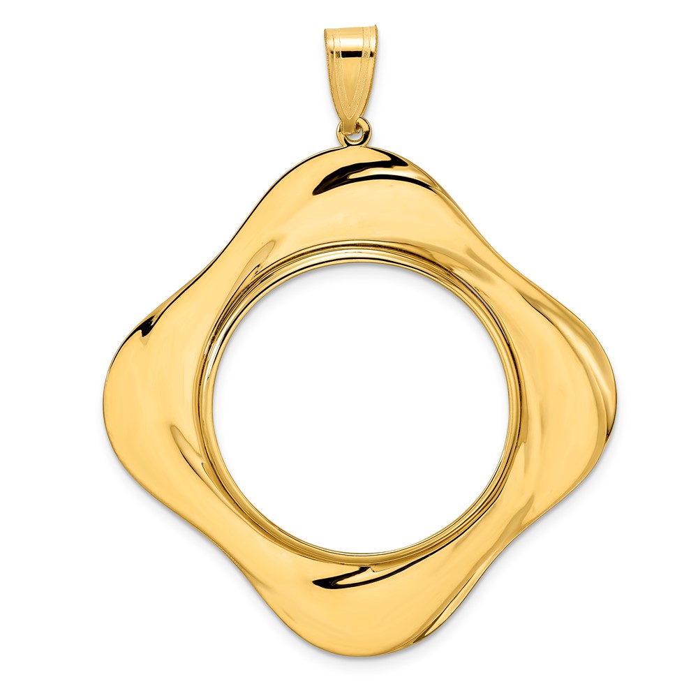 14k Polished Diagonal Riptide with 27.0mm Prong Coin Bezel Pendant