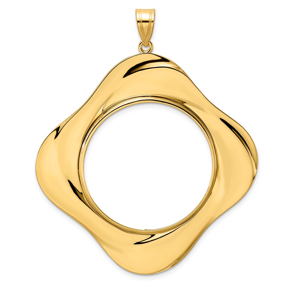 14k Polished Diagonal Riptide with 32.0mm Prong Coin Bezel Pendant