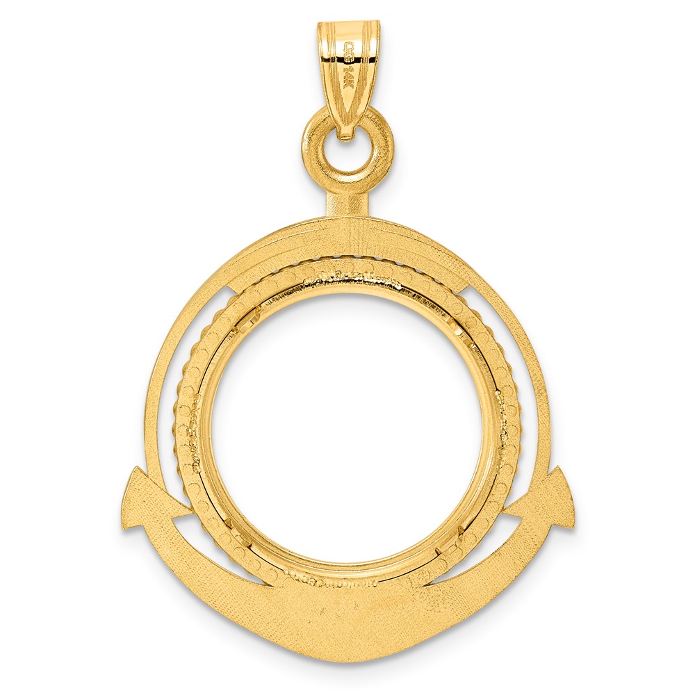 14k Polished Ships Anchor with 18.0mm Prong Coin Bezel Pendant