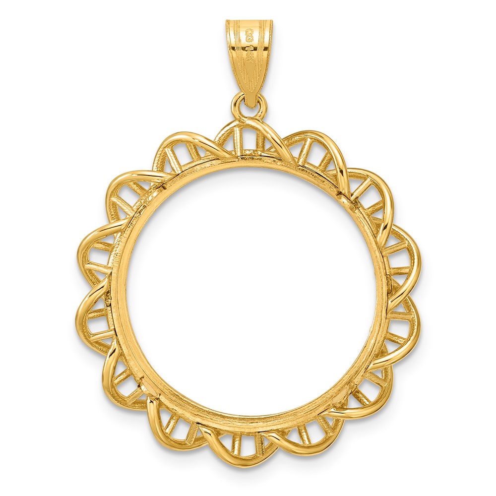 14k Polished Overlapping Singapore with 22.0mm Prong Coin Bezel Pendant