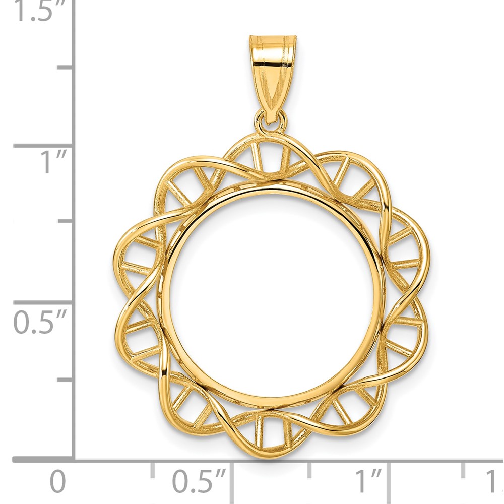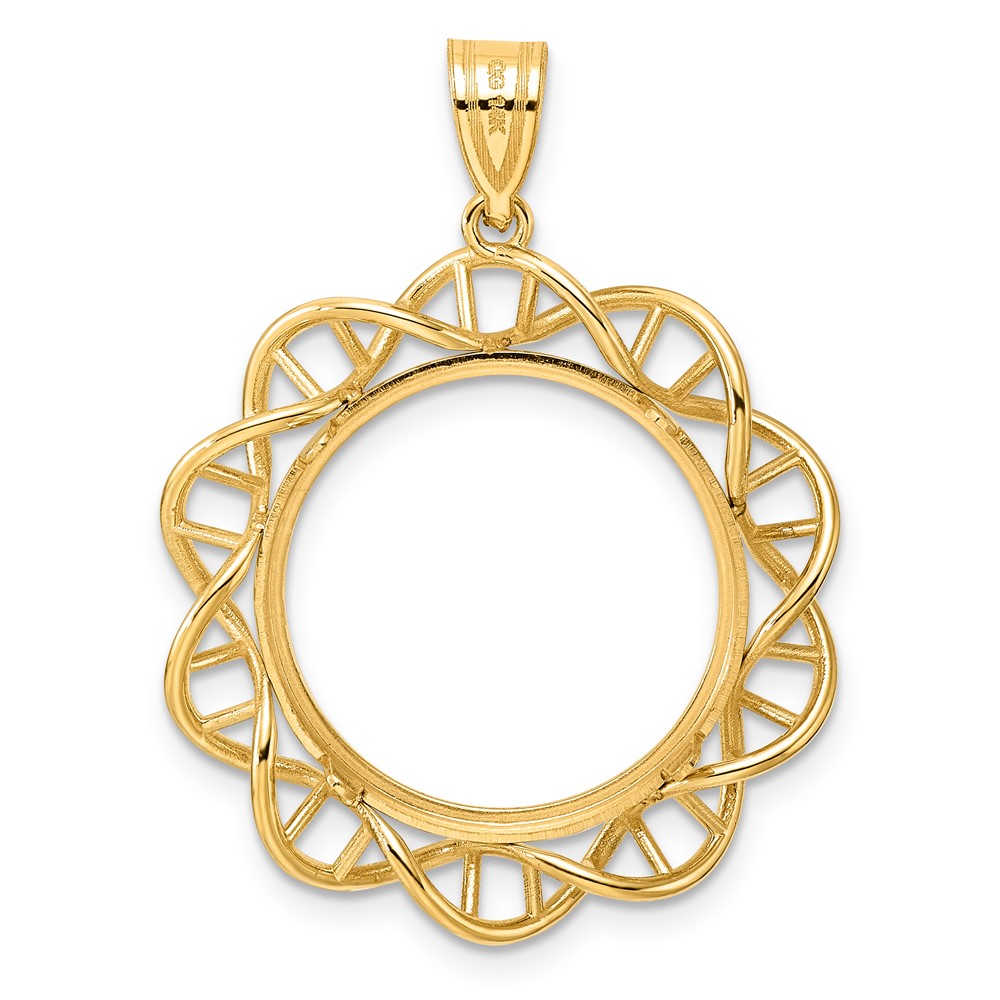 14k Polished Singapore with 18.0mm Prong Coin Bezel Pendant