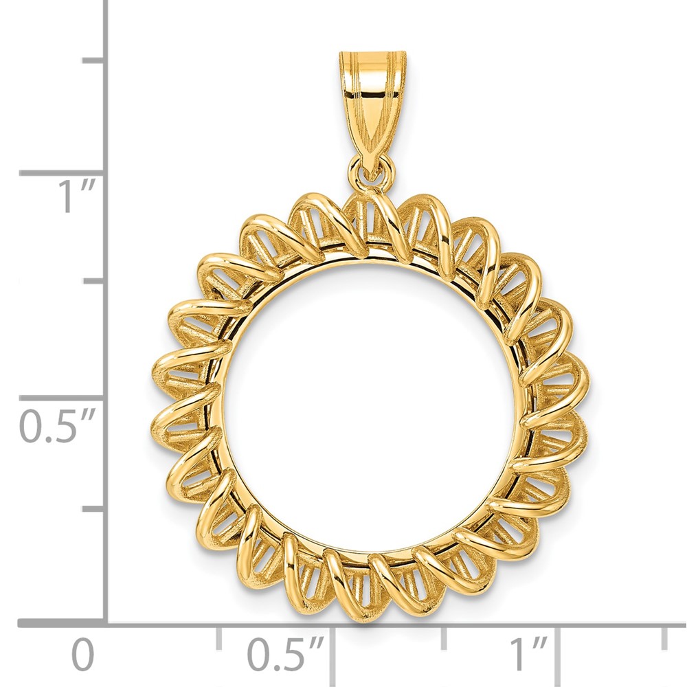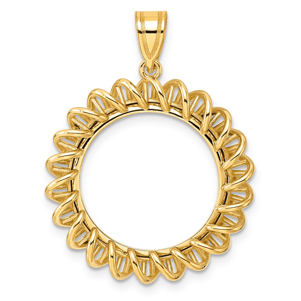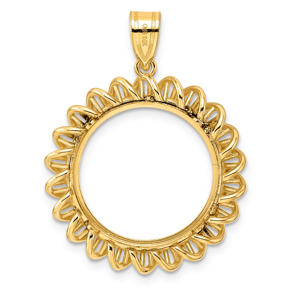 Wideband Distinguished Coin Jewelry 10k Polished and Diamond-cut 13.0mm Prong Coin Bezel Pendant
