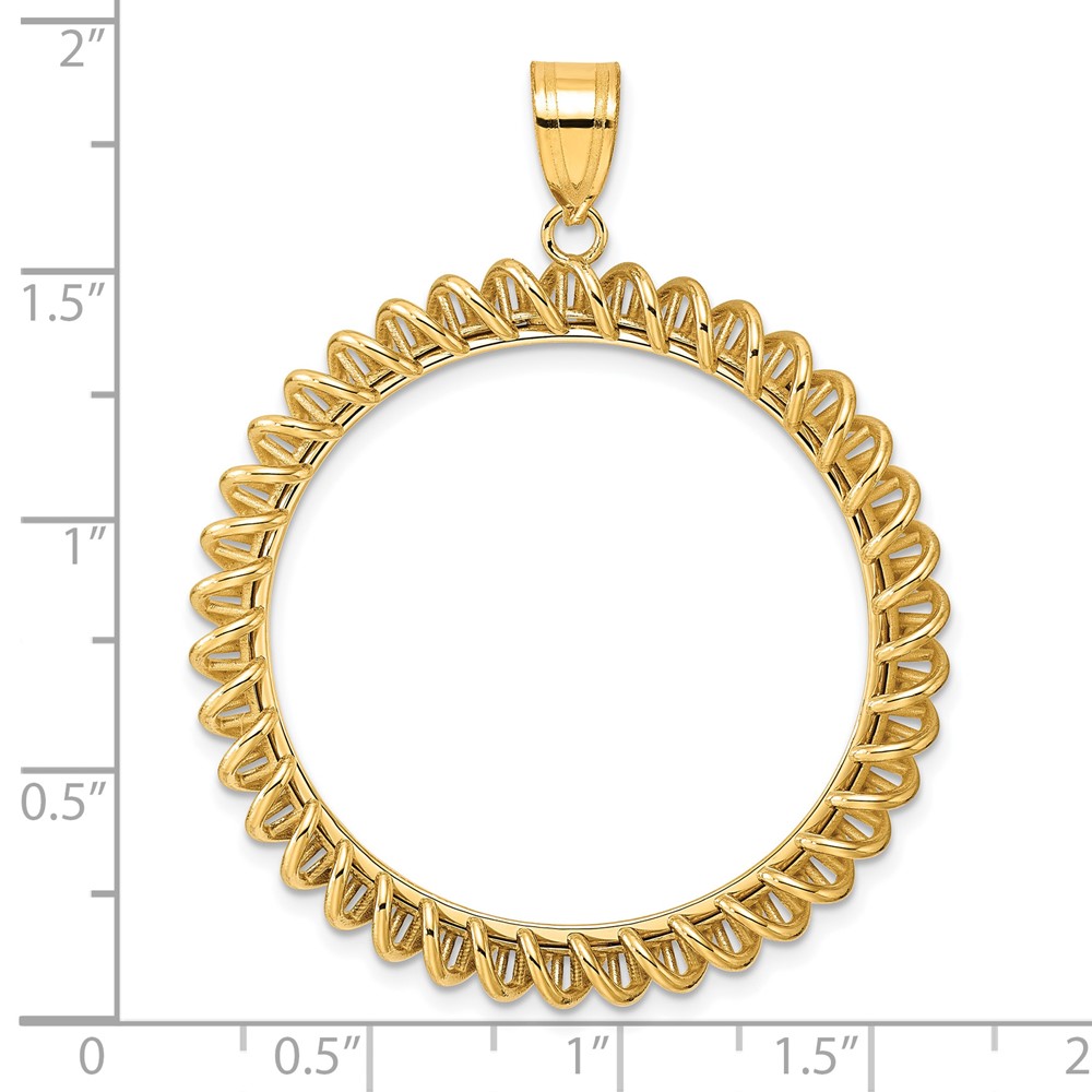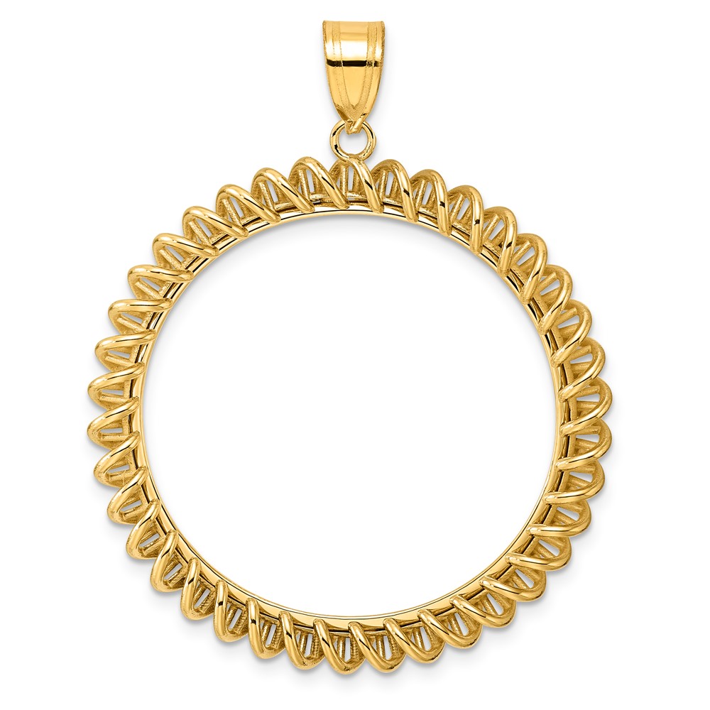 14k Polished Tight Singapore with 32.0mm Prong Coin Bezel Pendant