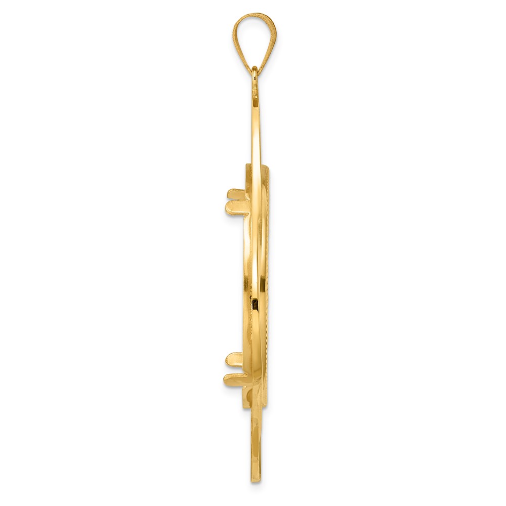 Wideband Distinguished Coin Jewelry 14k Polished and Diamond-cut 16.0mm Prong Coin Bezel Pendant