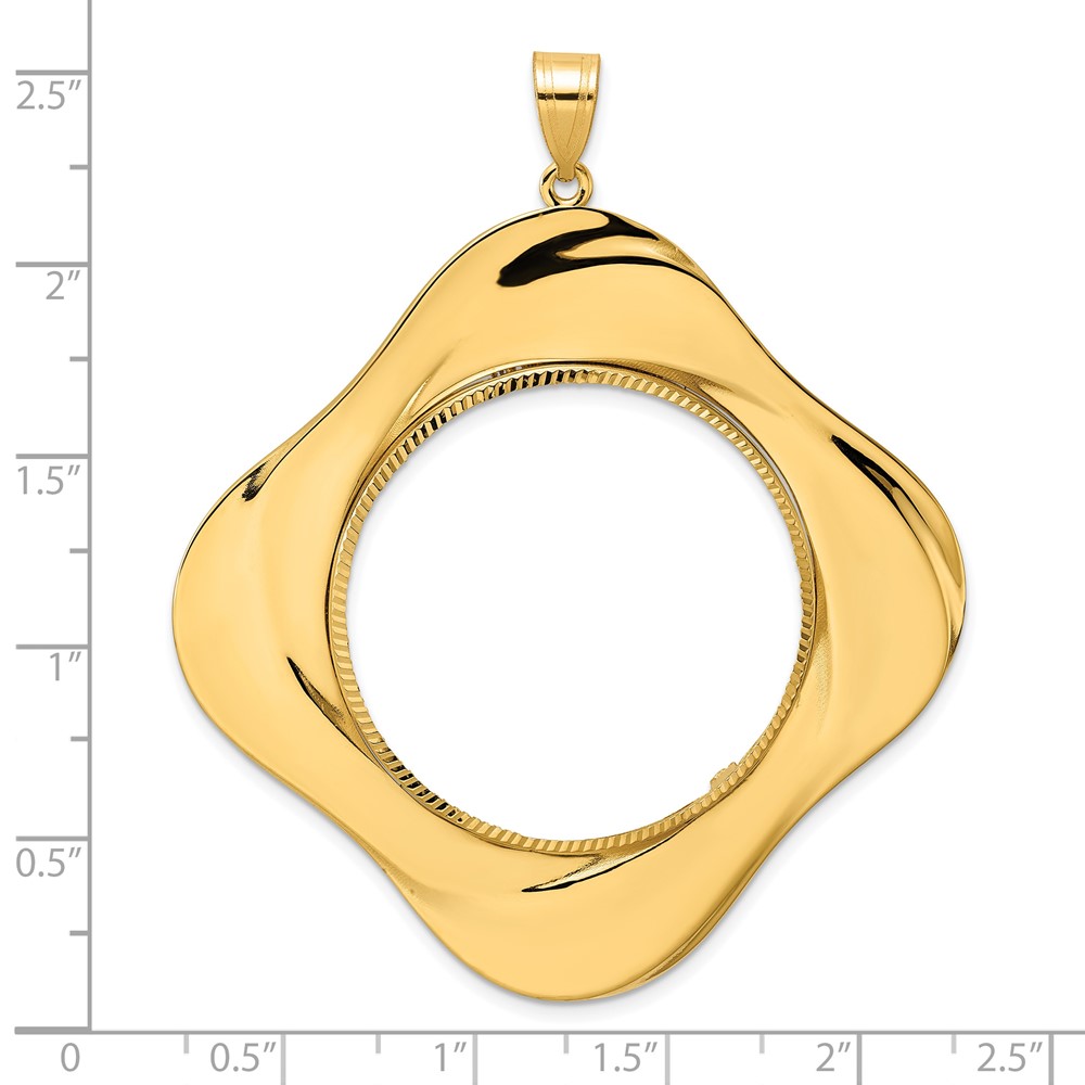 14k Diamond Cut Diagonal Riptide with 32.7mm Prong Coin Bezel Pendant