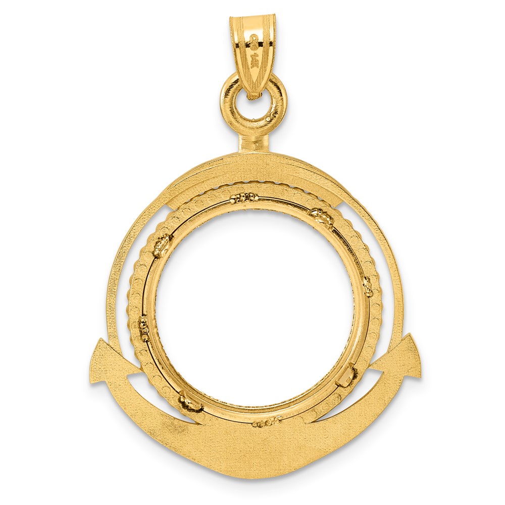 14k Diamond Cut Ships Anchor with 18.0mm Prong Coin Bezel Pendant