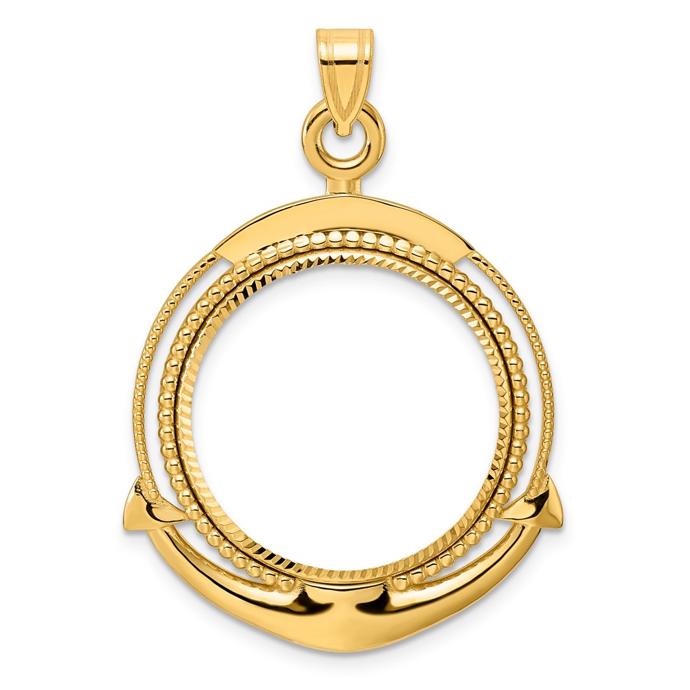 14k Diamond Cut Ships Anchor with 22.0mm Prong Coin Bezel Pendant