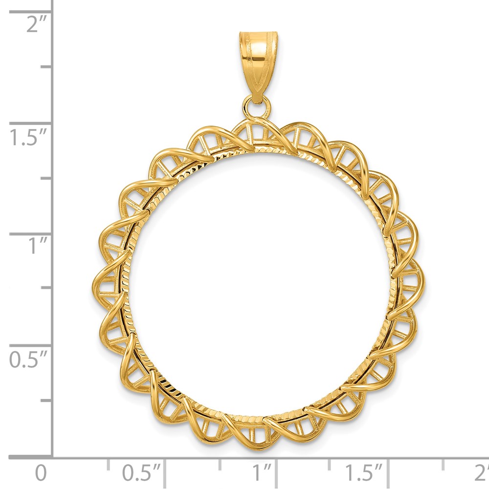 Wideband Distinguished Coin Jewelry 14k Polished and Diamond-cut 25.0mm x 2.35mm Screw Top Coin Bezel Pendant