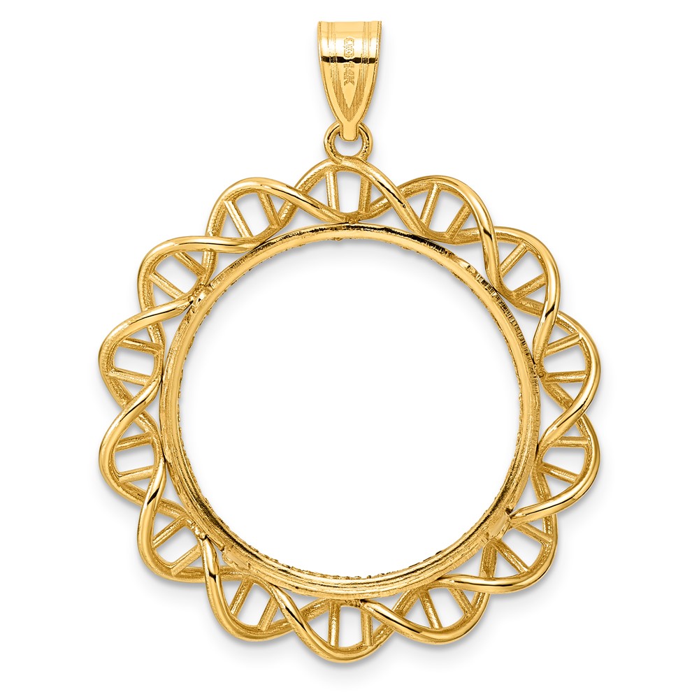 14k Diamond Cut Singapore with 22.0mm Prong Coin Bezel Pendant