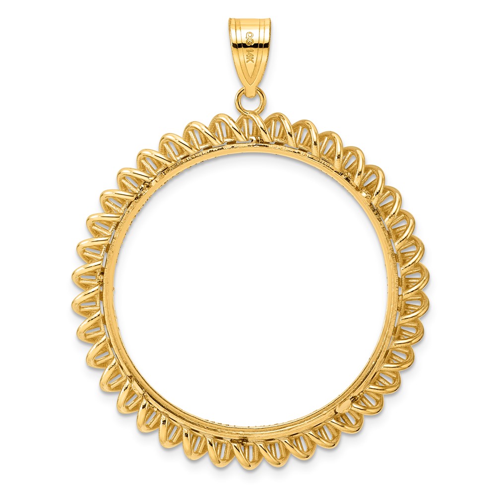 Wideband Distinguished Coin Jewelry 14k Polished Rope and Diamond-cut 13.0mm x 1.1mm Screw Top Coin Bezel Pendant