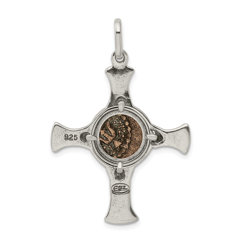 Ancient Coins Sterling Silver and Bronze Antiqued Widow's Mite Coin Cross Pendant with a Certificate of Authenticity