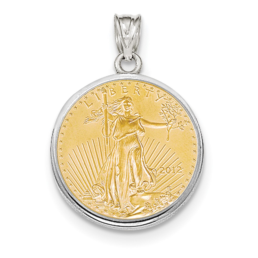 Wideband Distinguished Coin Jewelry 10k Polished and Diamond-cut 16.0mm Prong Coin Bezel Pendant