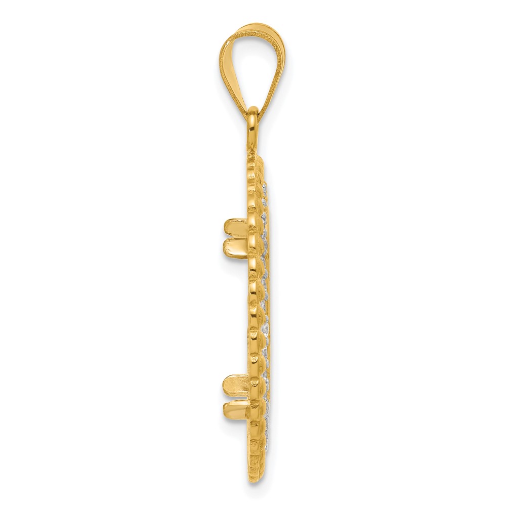 14k Polished Diamond Bead with 16.5mm Prong Coin Bezel Pendant Mounting