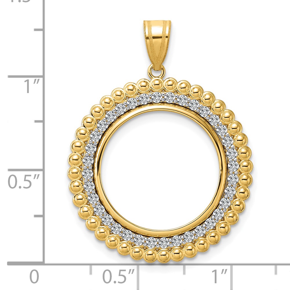 14k Polished Diamond Bead with 18.0mm Prong Coin Bezel Pendant Mounting