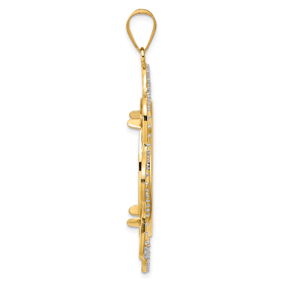 14k Polished Diamond Wave with 27.0mm Prong Coin Bezel Pendant Mounting