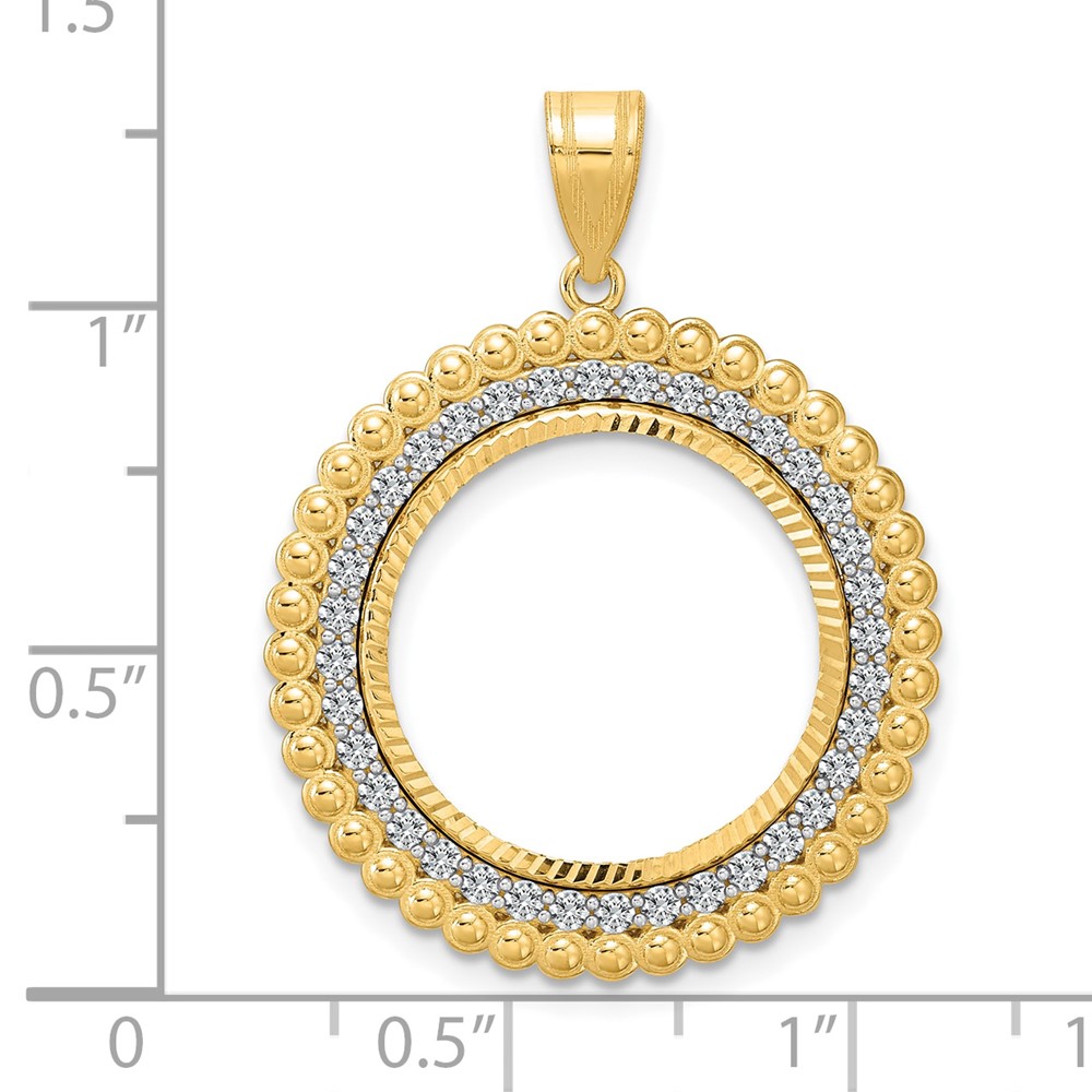14k Diamond Cut Diamond Bead with 18.0mm Prong Coin Bezel Pendant Mounting