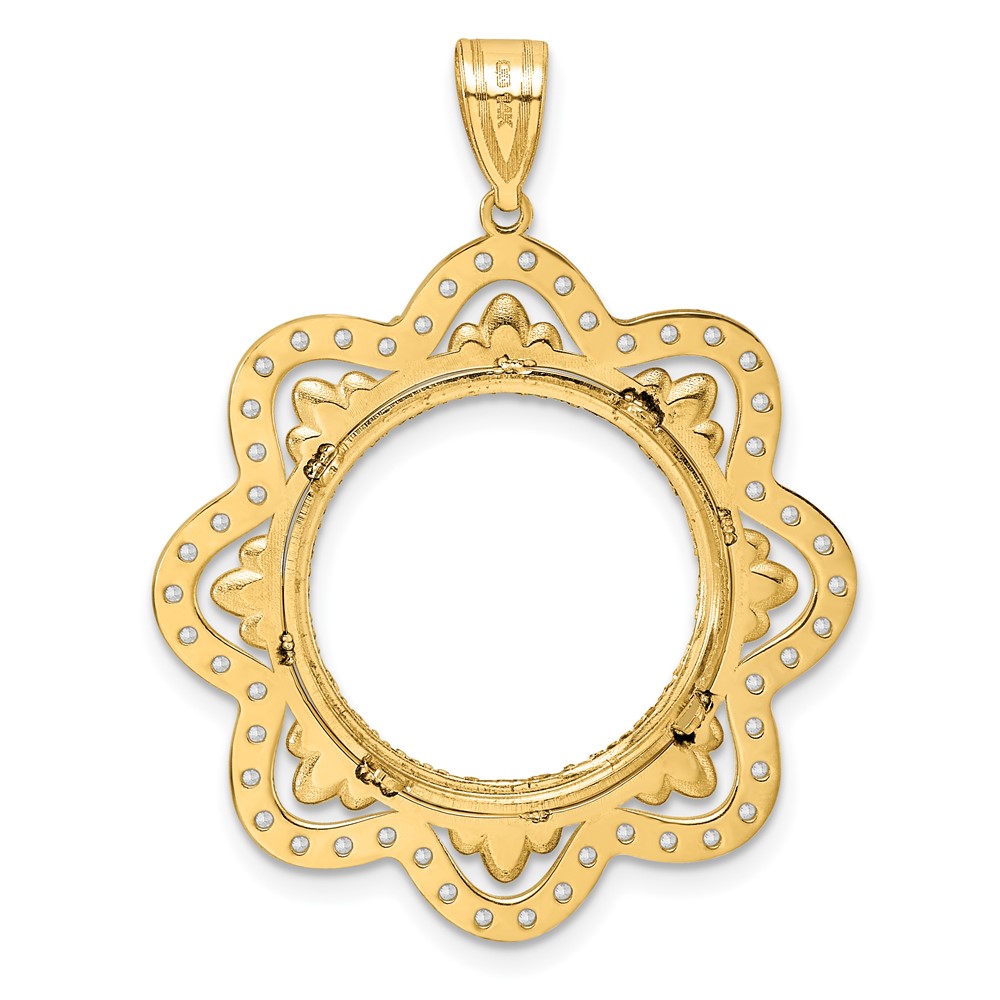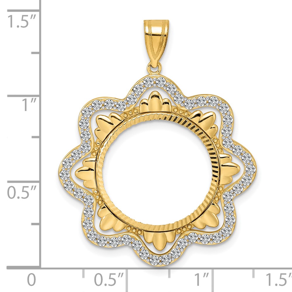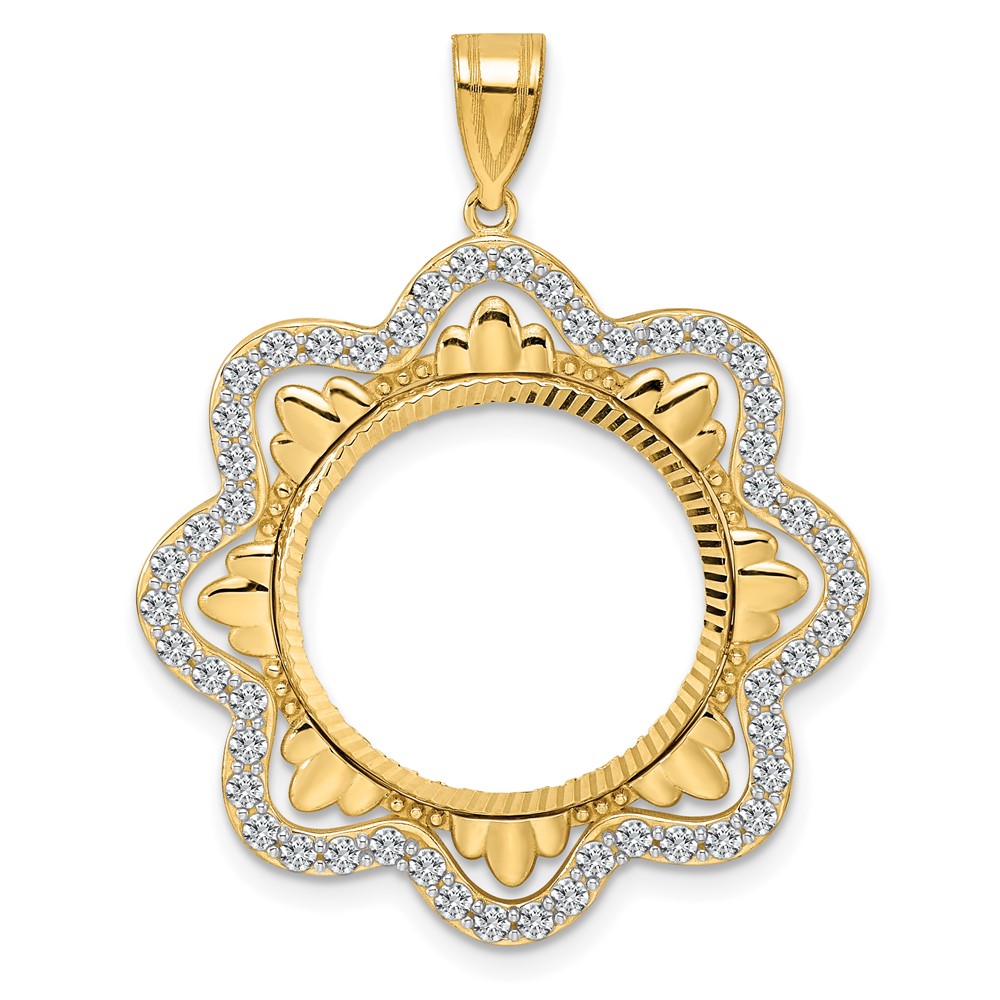 14k Diamond Cut Diamond Wave with 18.0mm Prong Coin Bezel Pendant Mounting