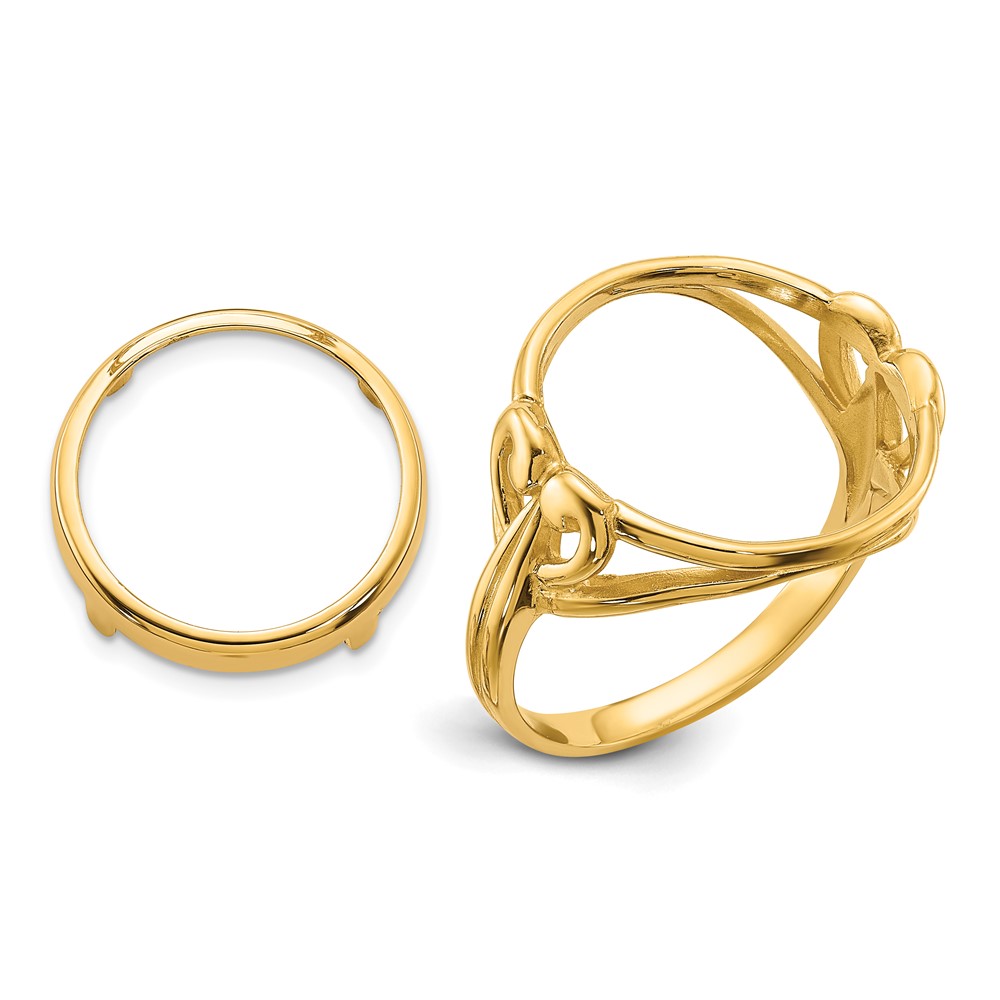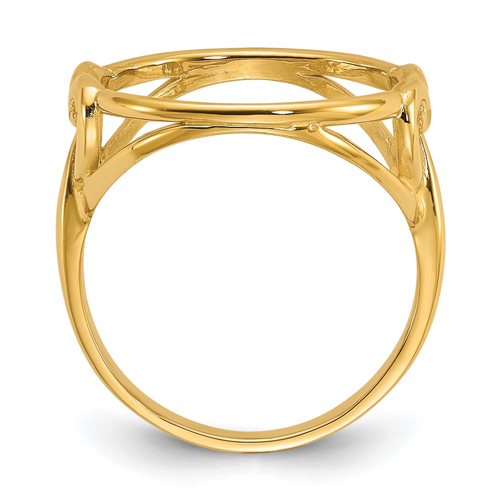 Wideband Distinguished Coin Jewelry 14k Ladies' Polished Fancy Curved Wire Heart 14.0mm Coin Bezel Ring