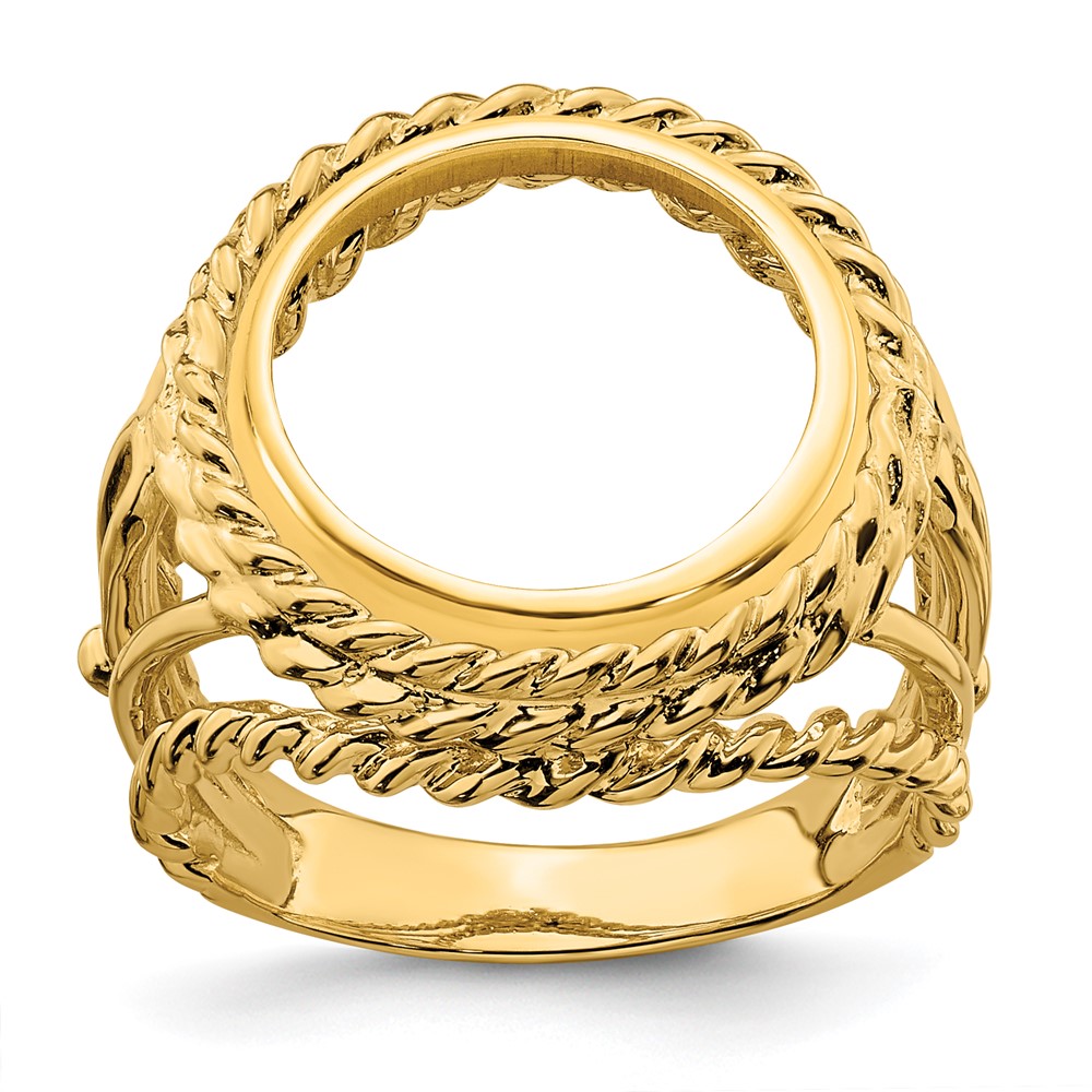 14ky Ladies' Double Twisted Wire Prong Coin Bezel Ring