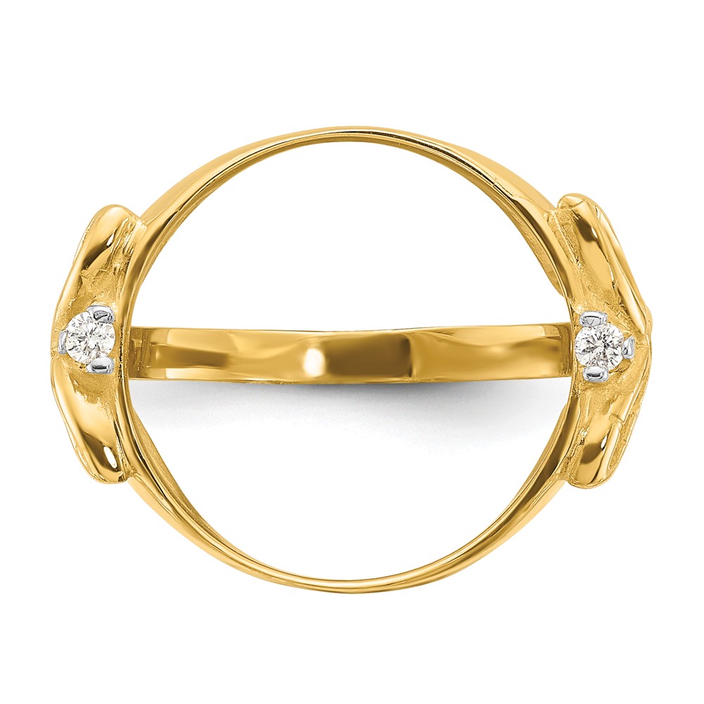 14ky Rhodium Ladies' Trinity Diamond Prong Coin Bezel Ring