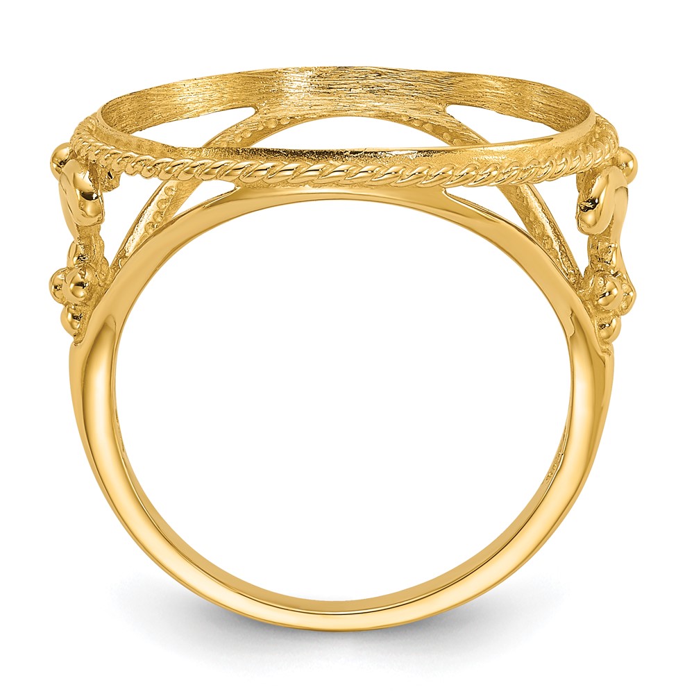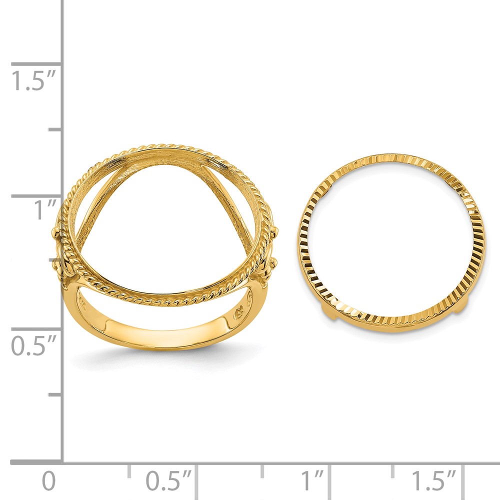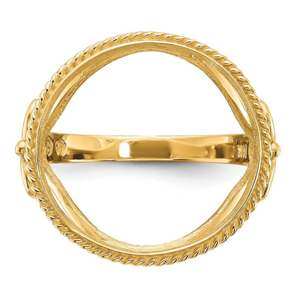 Wideband Distinguished Coin Jewelry 14k Ladies' Polished and Diamond-cut Fancy Wire with Twisted Edge 16.5mm Coin Bezel Ring