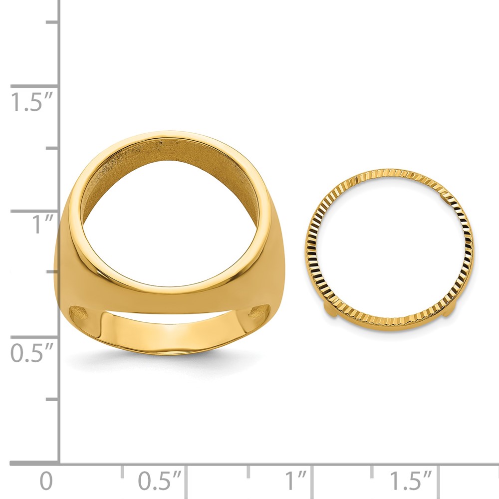 Wideband Distinguished Coin Jewelry 14k Men's Polished and Diamond-cut Classic Open Back 16.0mm Coin Bezel Ring