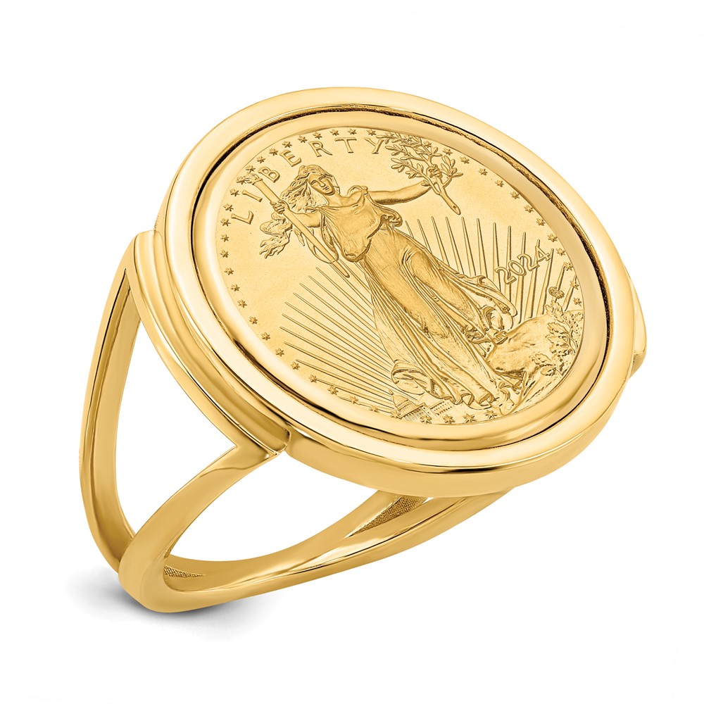 Wideband Distinguished Coin Jewelry 10k Ladies' Polished Mounted 1/10oz American Eagle Coin Bezel Ring