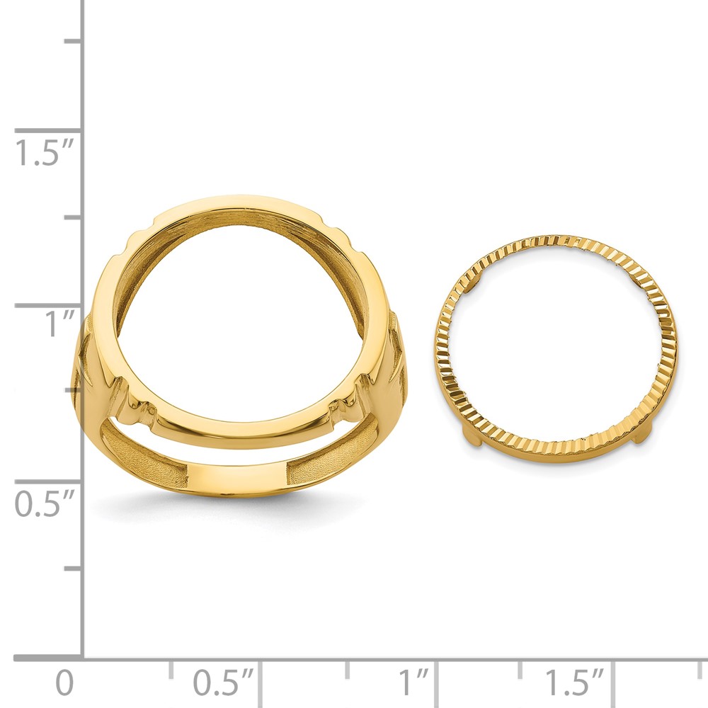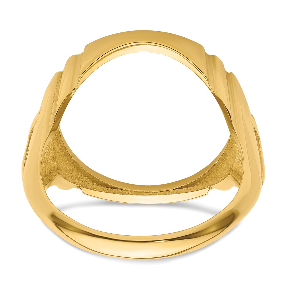 Wideband Distinguished Coin Jewelry 14k Men's Polished and Diamond-cut with Cross Sides 16.5mm Coin Bezel Ring