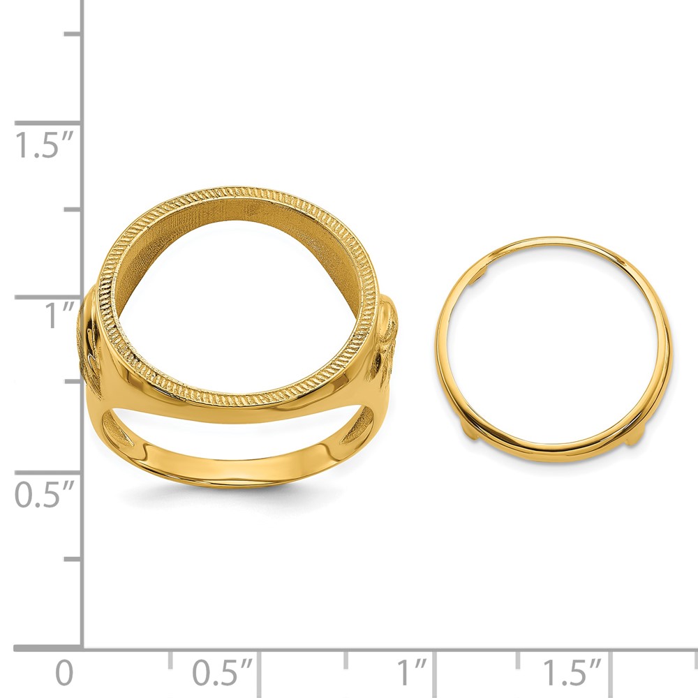 Wideband Distinguished Coin Jewelry 14k Men's Polished and Textured with Eagle Side 16.5mm Coin Bezel Ring