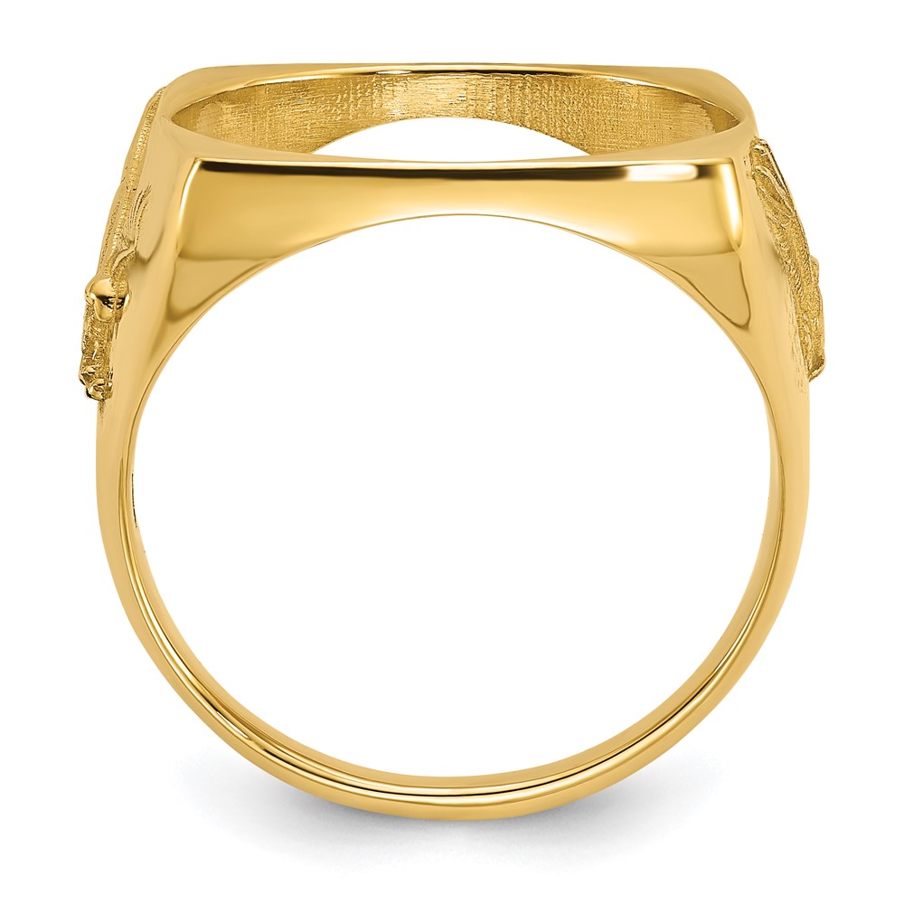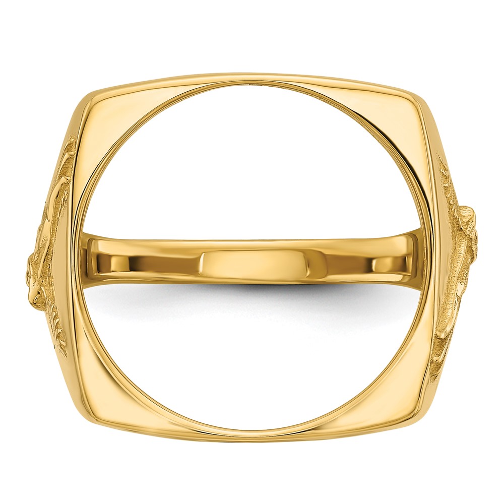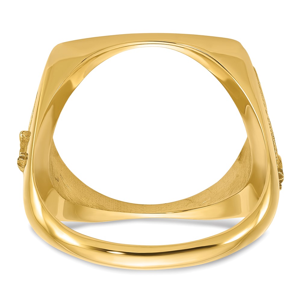 Wideband Distinguished Coin Jewelry 14k Men's Polished and Diamond-cut with Flying Eagle Side Square Shaped 16.5mm Coin Bezel Ring
