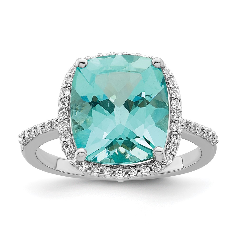 Sterling Silver Rhodium-plated Light Blue Crystal CZ Halo Ring