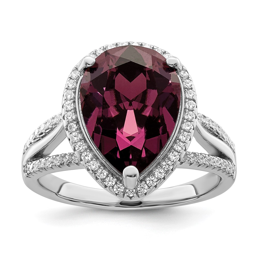 Sterling Silver Rhodium-plated CZ & Dk Purple Crystal Ring