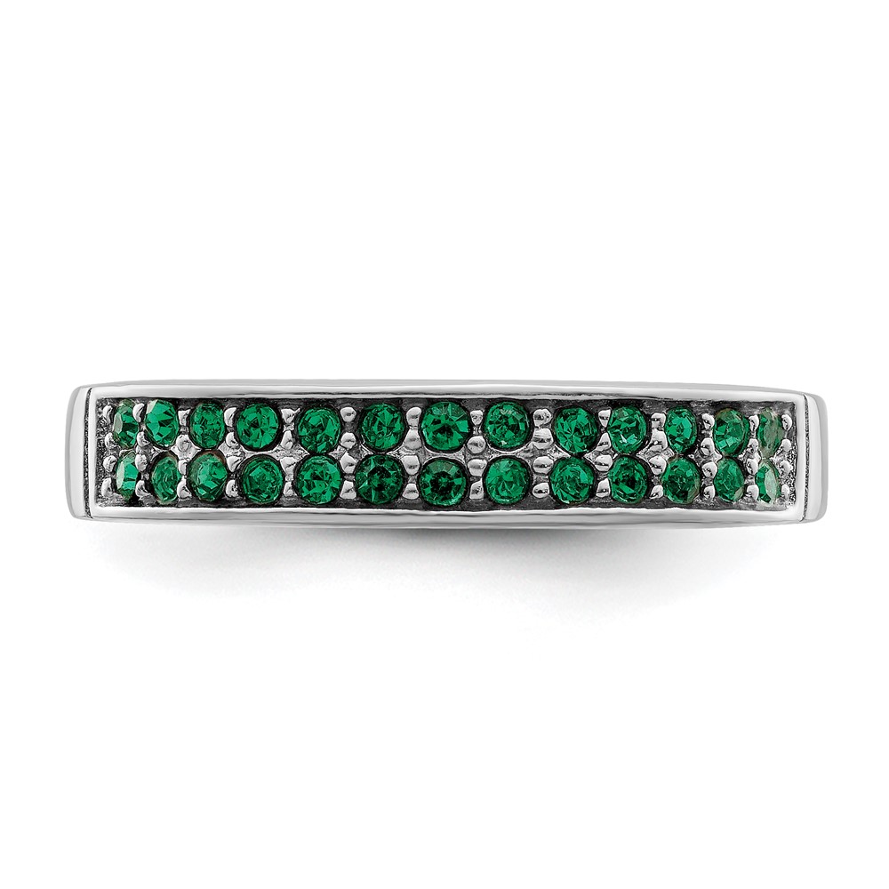 Sterling Silver Rhodium-plated Polished Green Crystal Ring