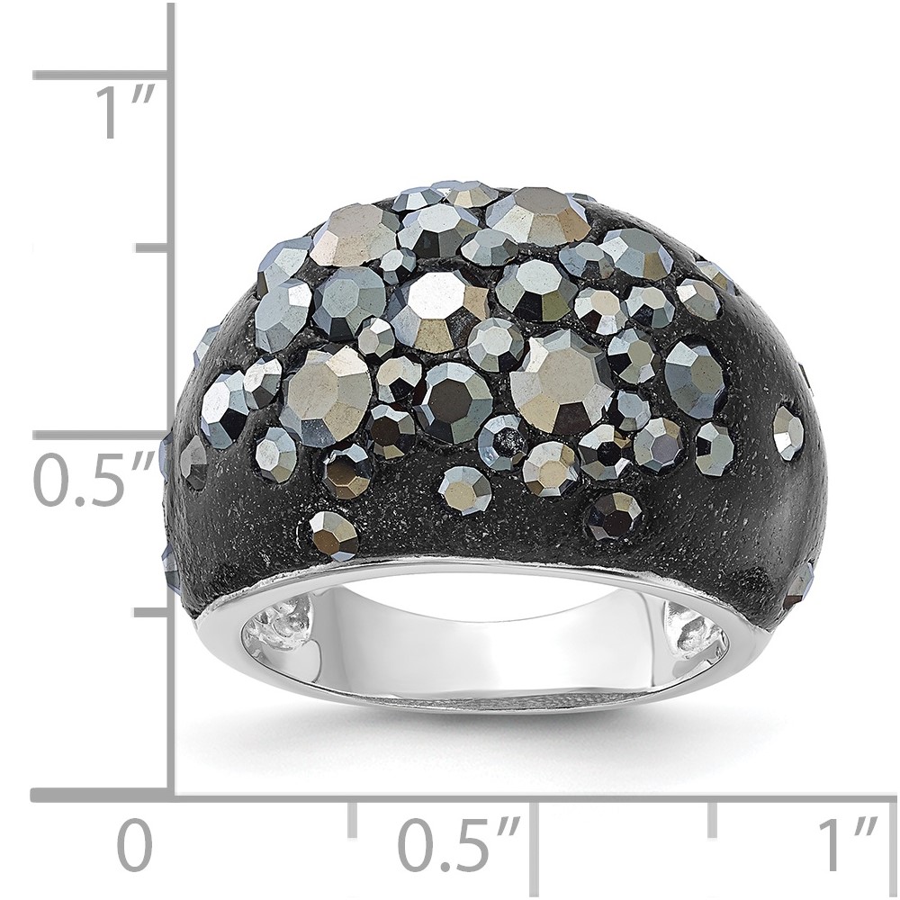 Sterling Silver Rhodium-plated Black Clay & Preciosa Crystal Ring
