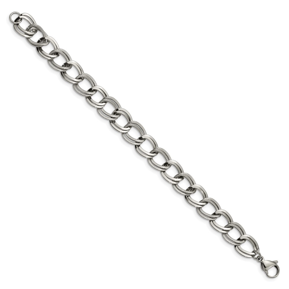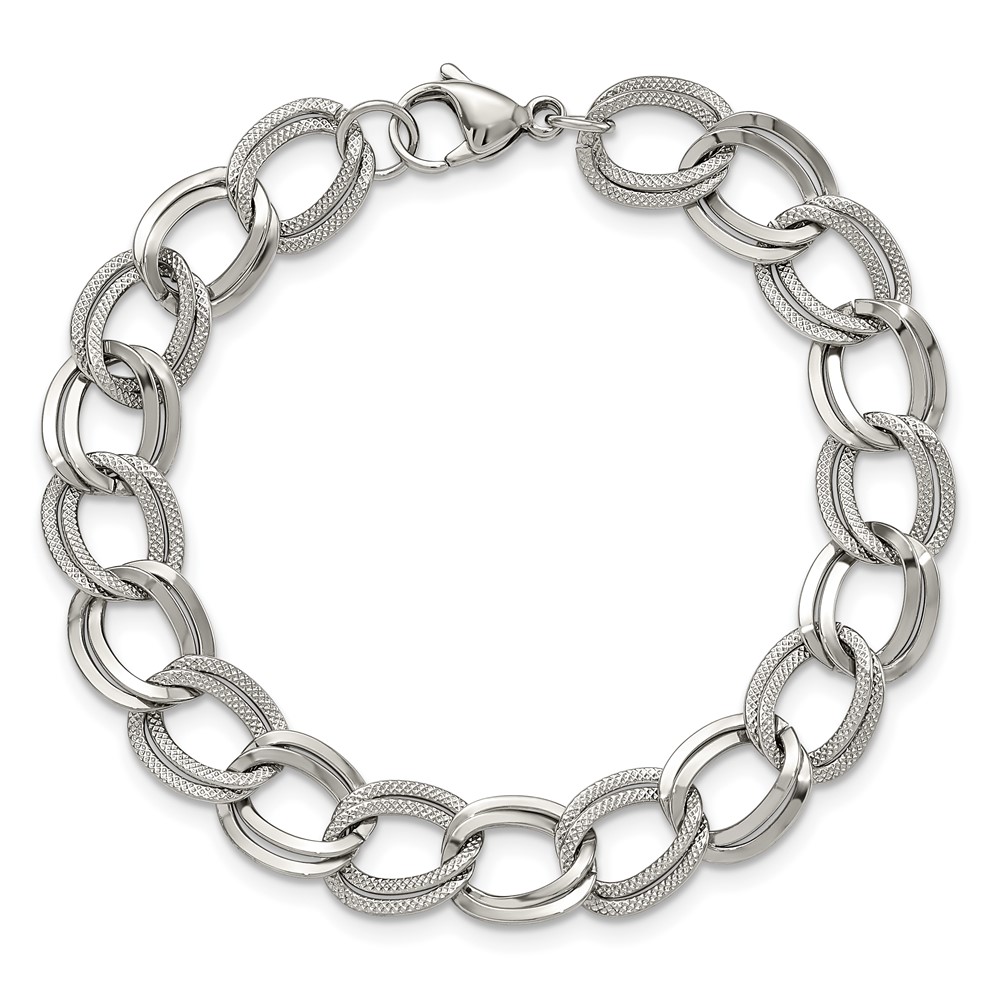 Chisel Stainless Steel Polished and Textured 8 inch Link Bracelet