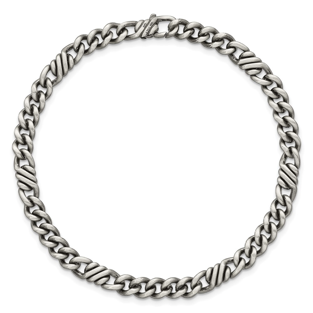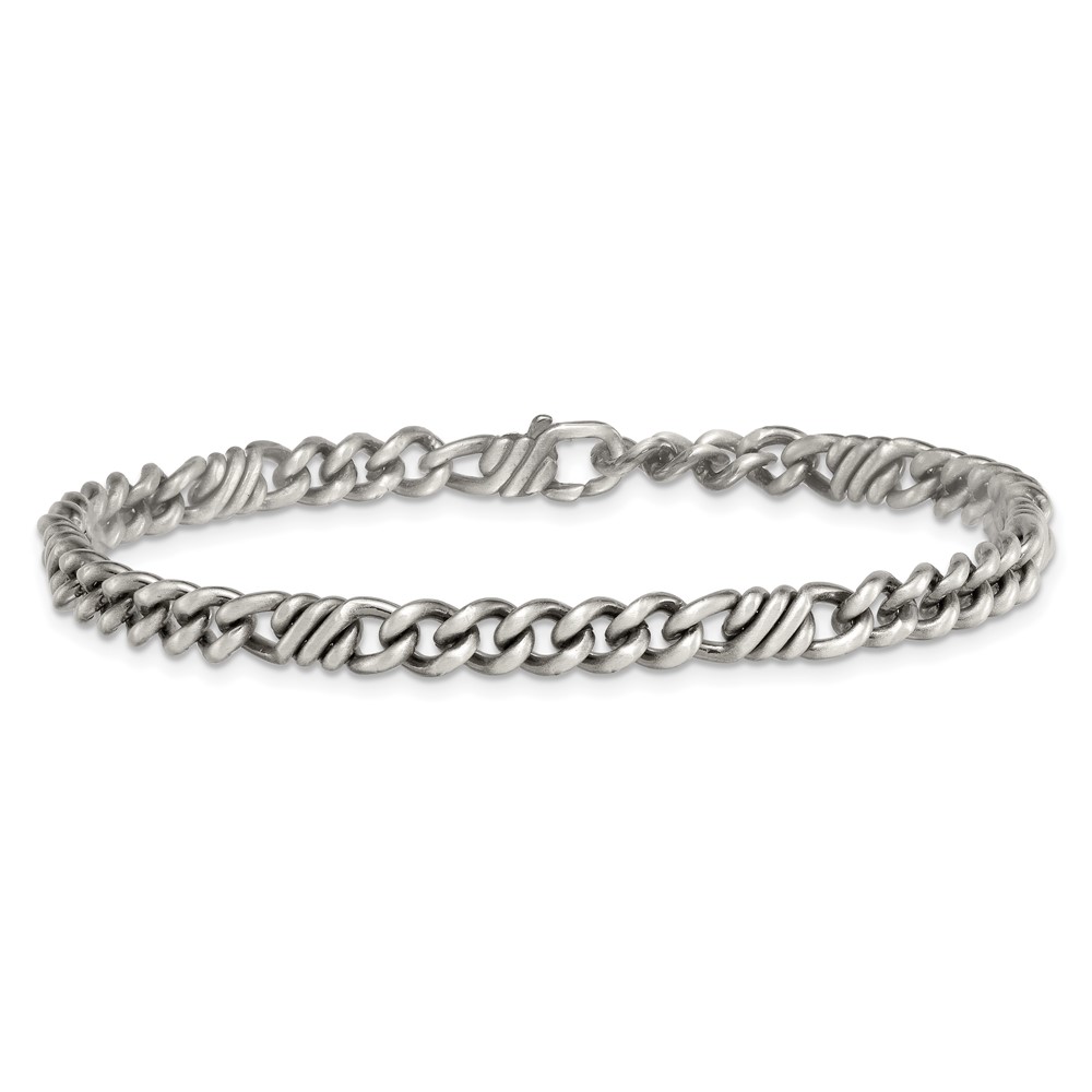 Sterling Silver Black Ruthenium-plated Brushed Fancy Curb Chain Mens 8.5 inch Bracelet