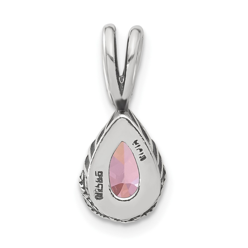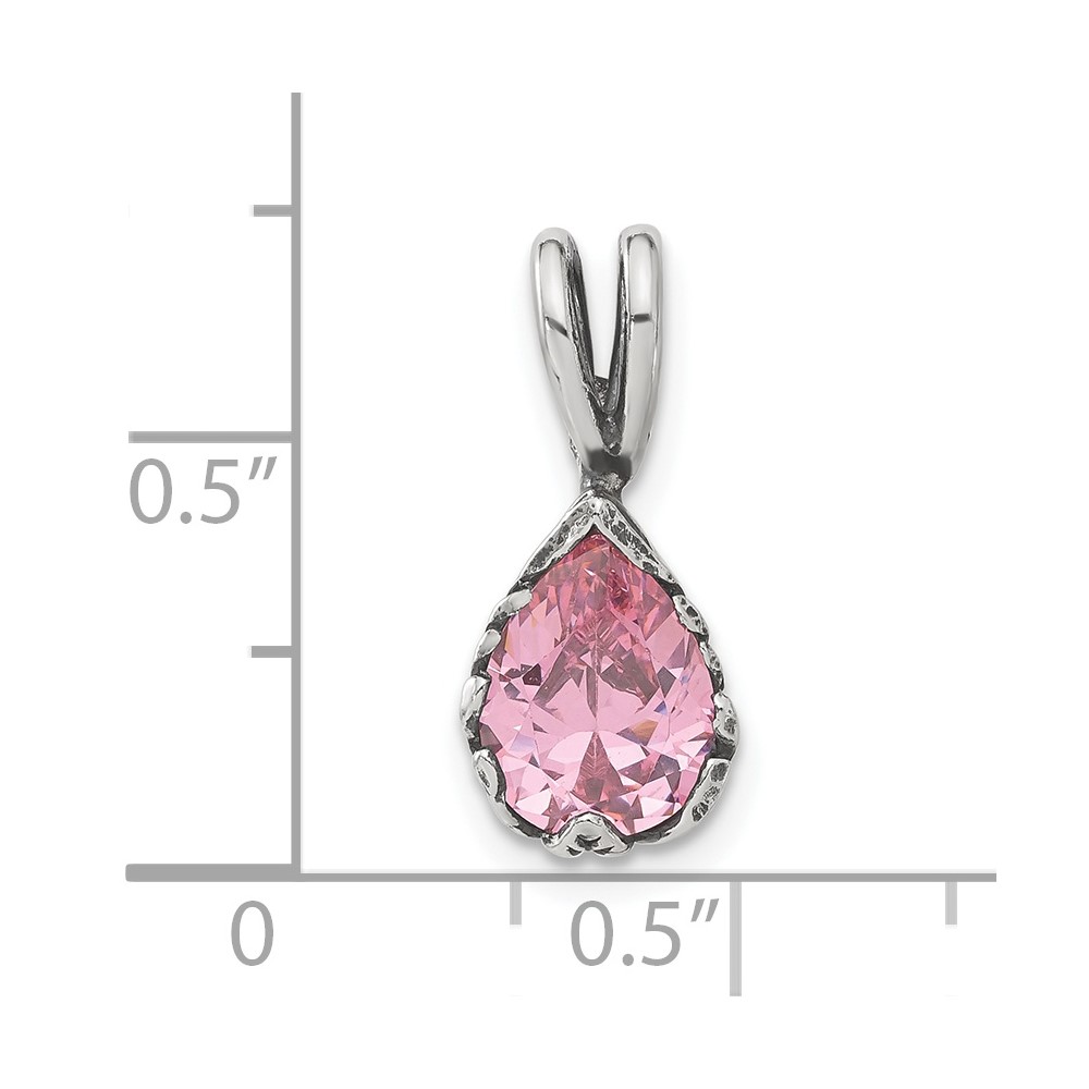 Sterling Silver Antiqued Pink Teardrop CZ Pendant