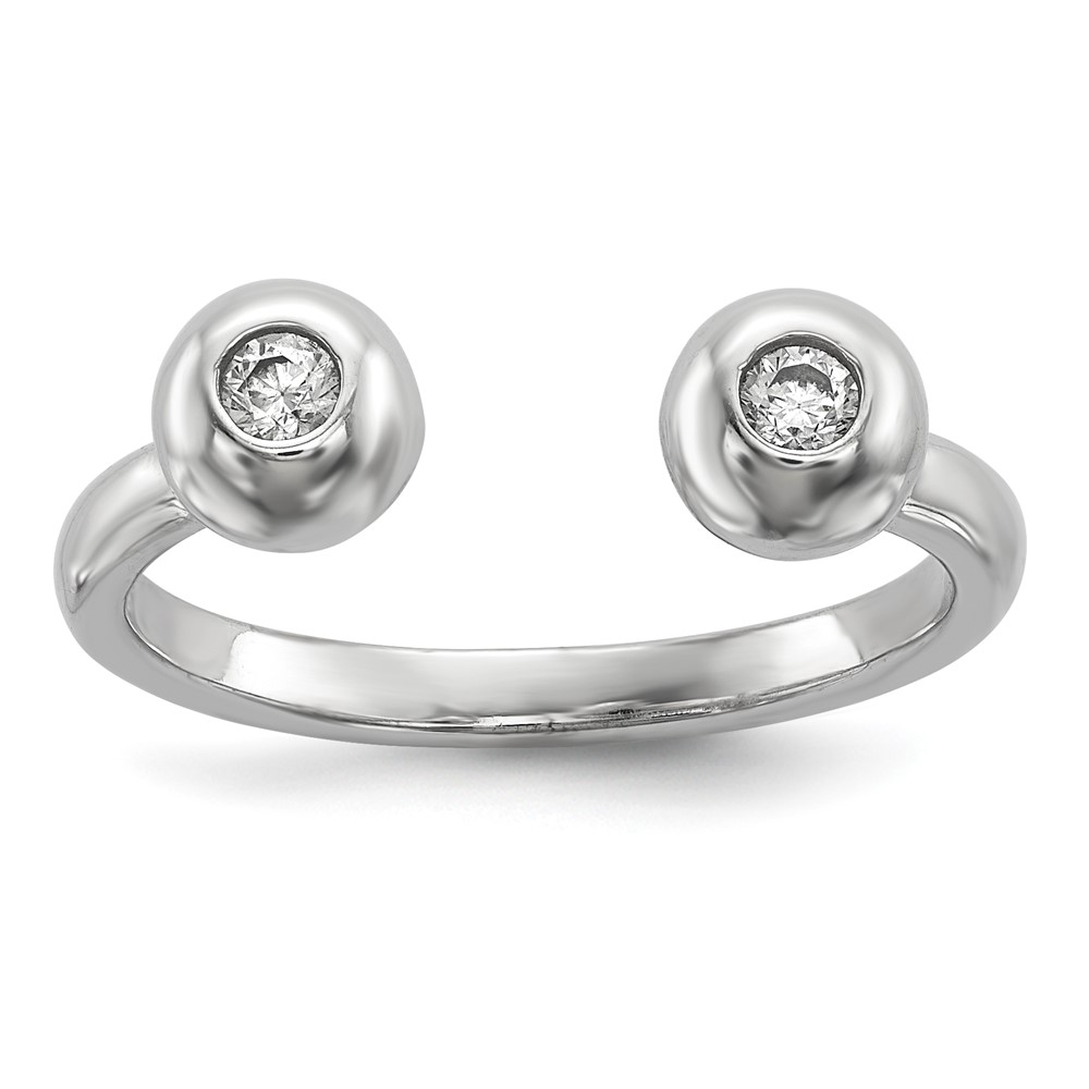 Sterling Silver Rhodium-plated Polished CZ Adjustable Cuff Ring