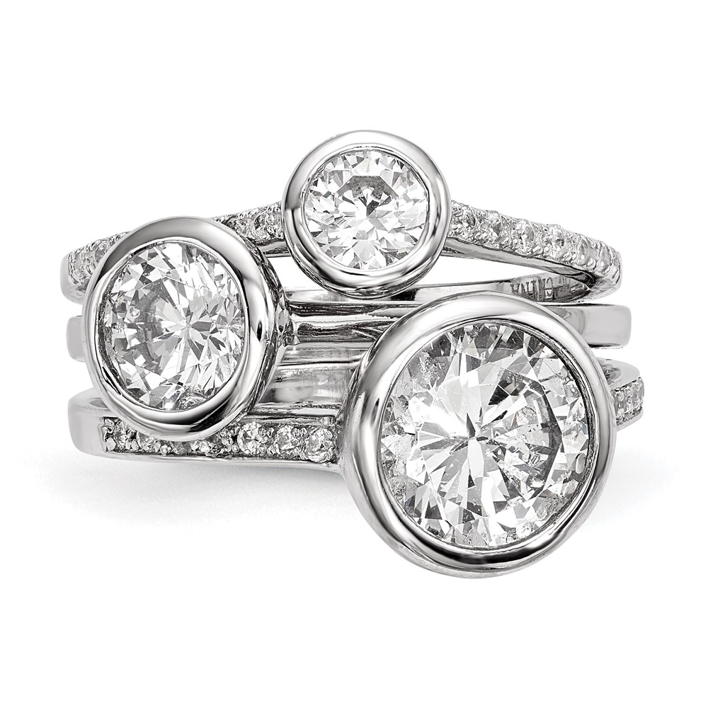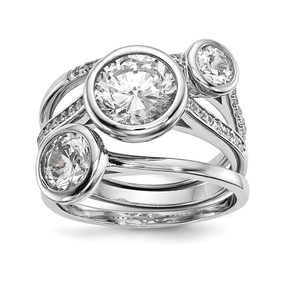 Sterling Silver Rhodium-plated CZ 3-Ring Set