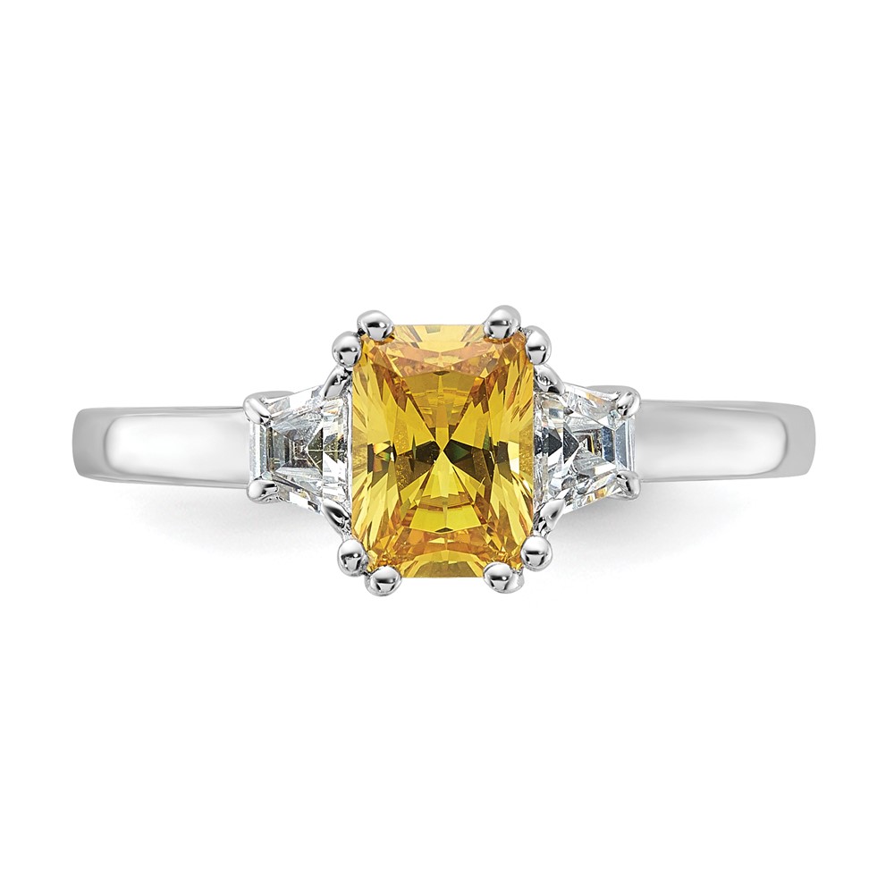 Sterling Silver Rhod-pltd Emerald-cut Yellow/White Diamonore CZ Ring