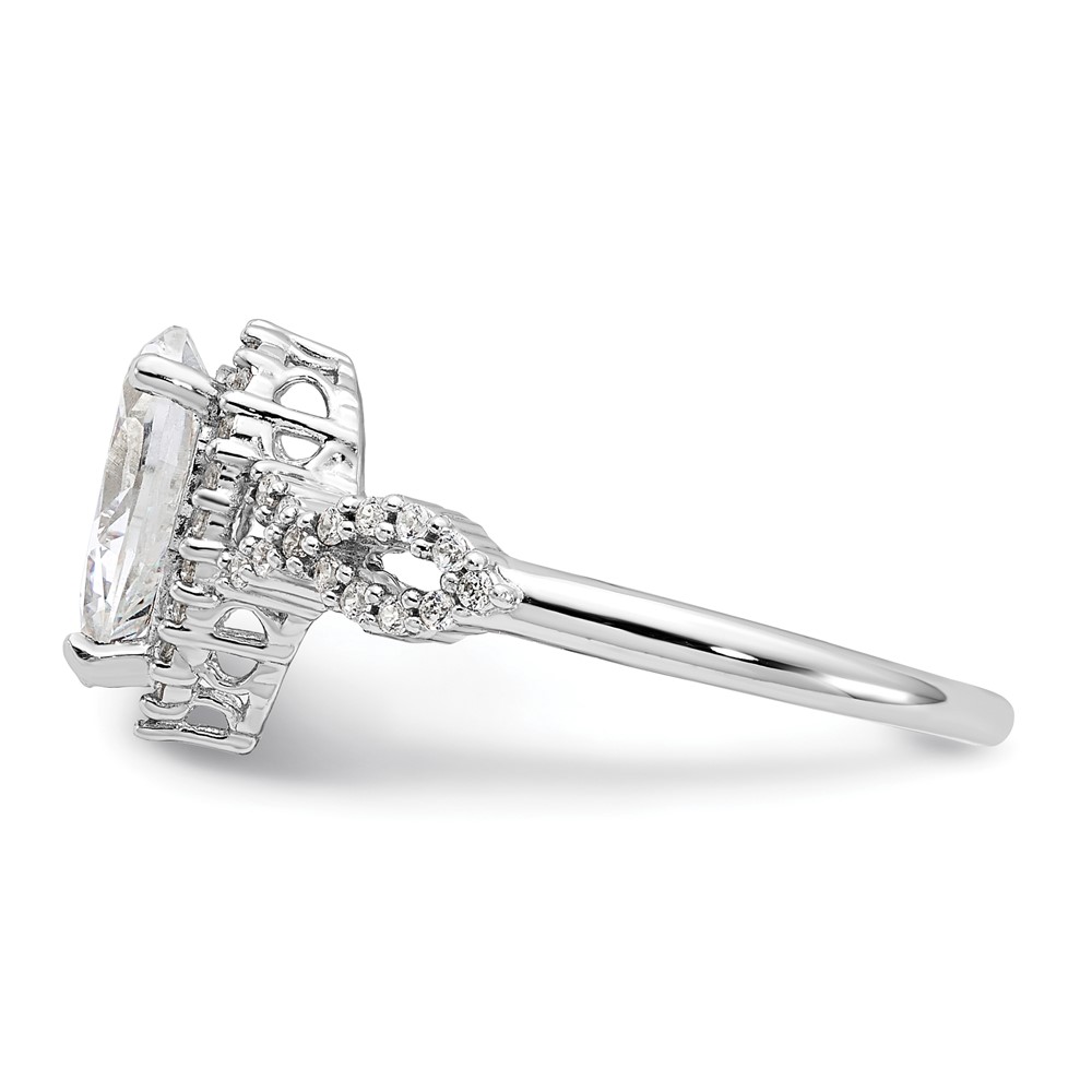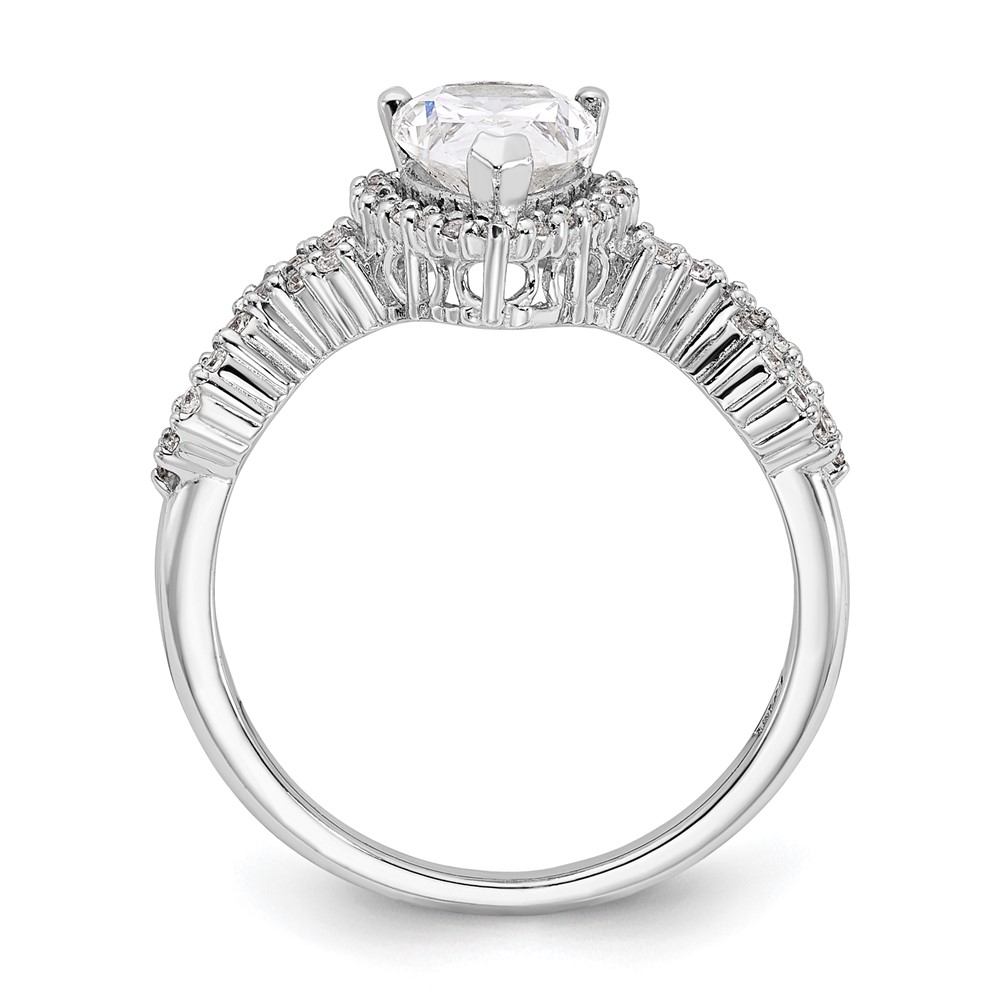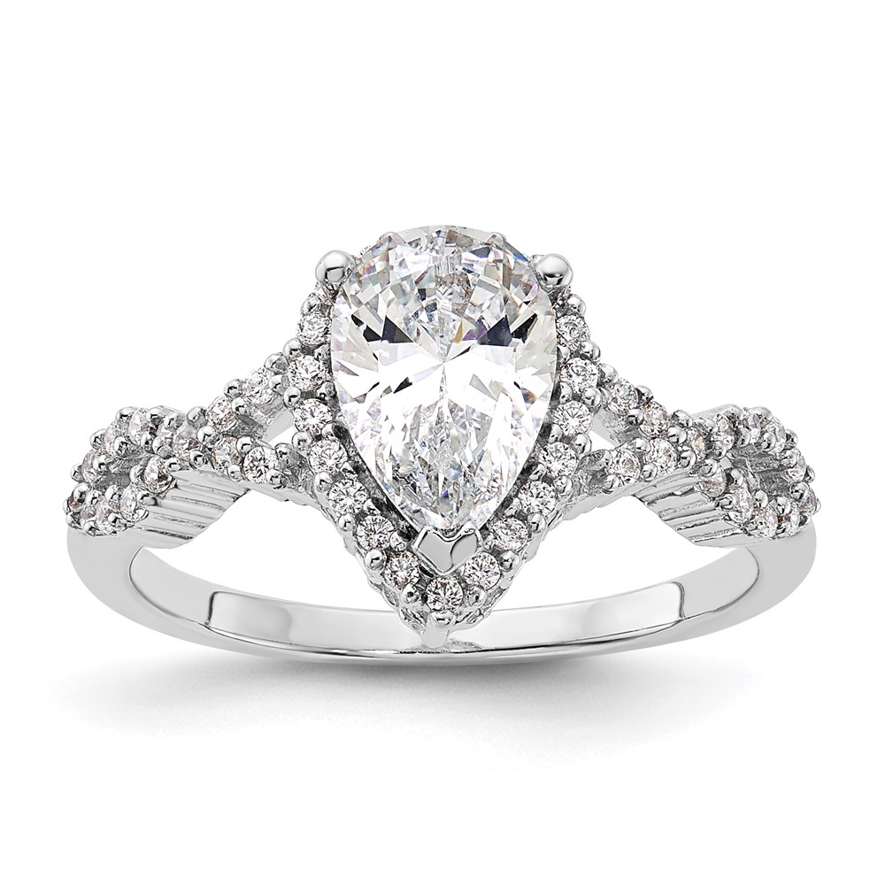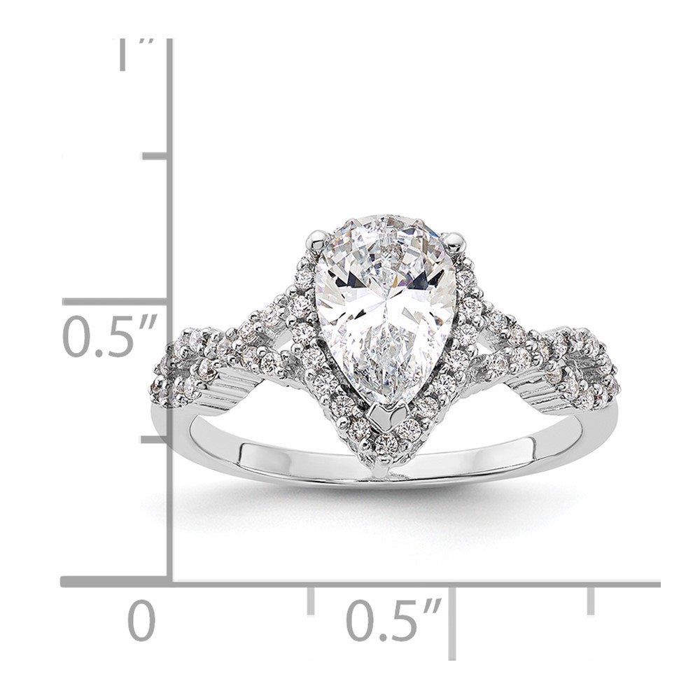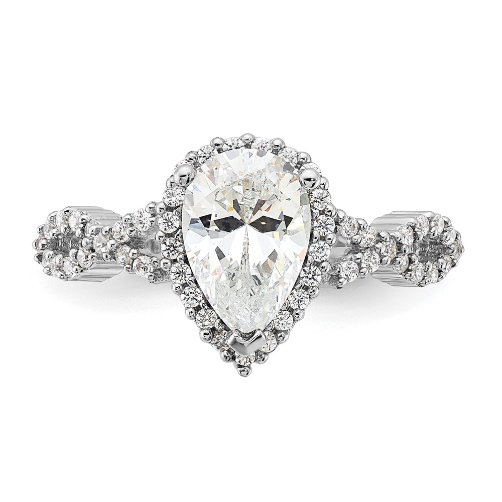 Sterling Silver Rhodium-plated Diamonore Pear Halo Ring