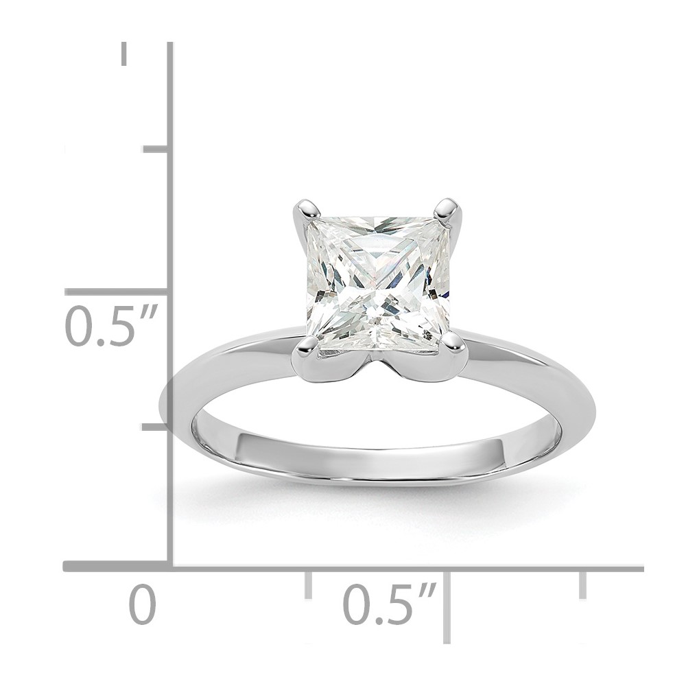 Sterling Silver Rhodium-plated 6.5mm Princess Cut Diamonore CZ Ring