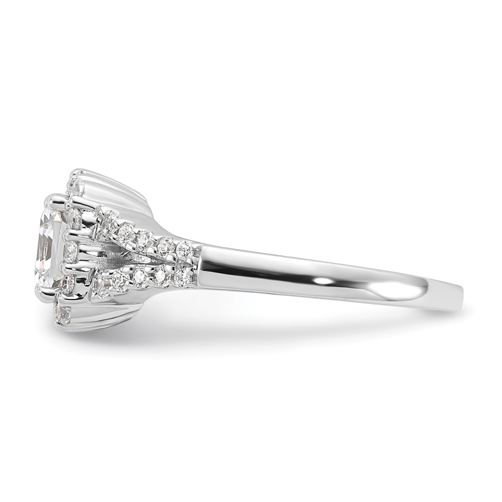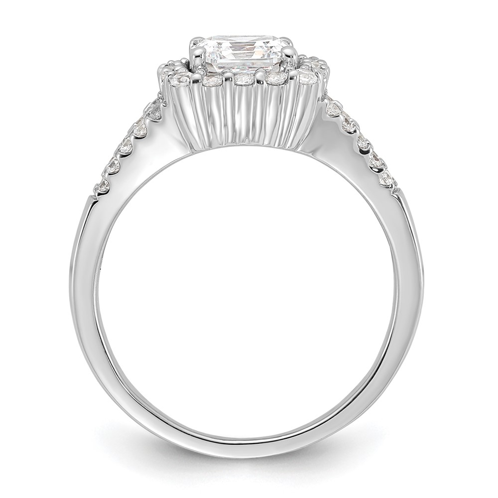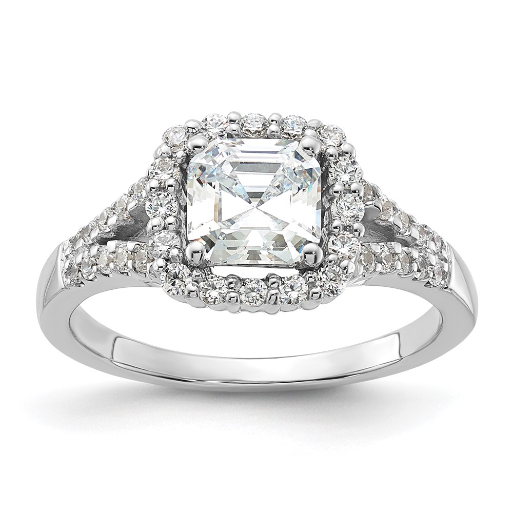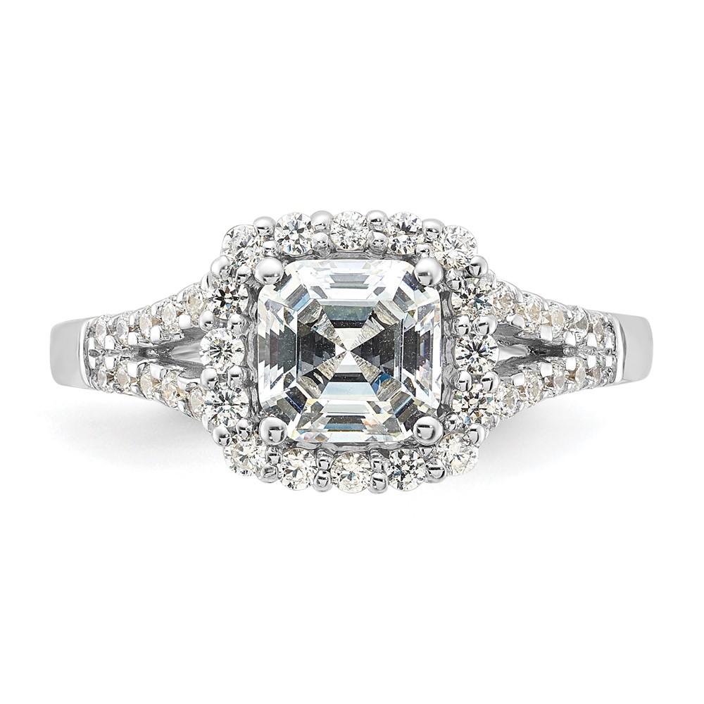 Sterling Silver Rhodium-plated Diamonore Asscher-cut Halo Ring