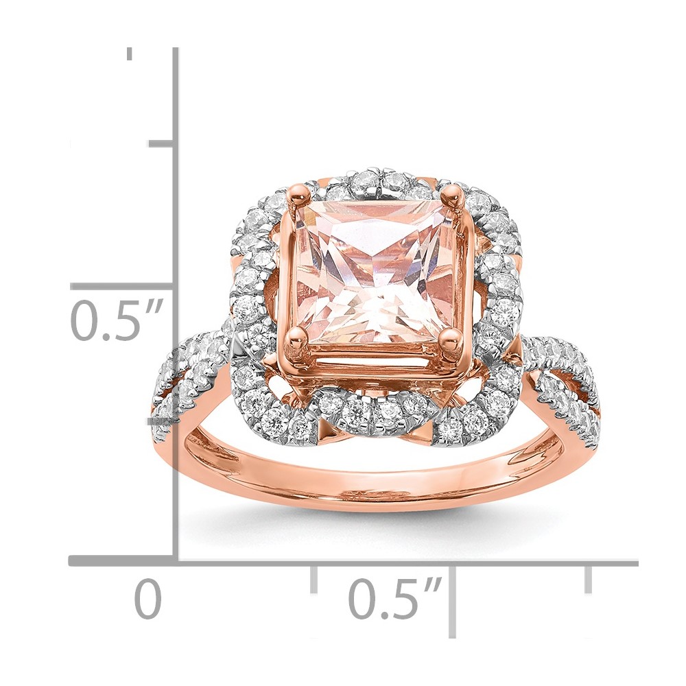 Sterling Silver Rose-tone Polished Morganite and CZ Ring